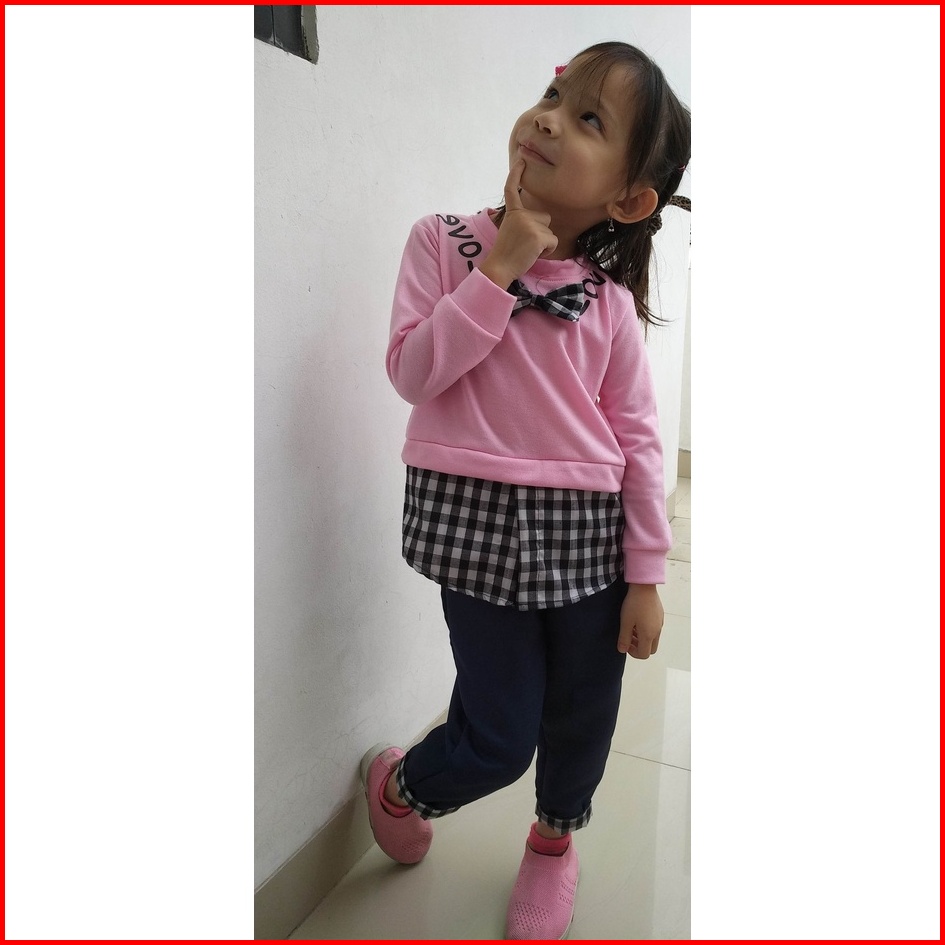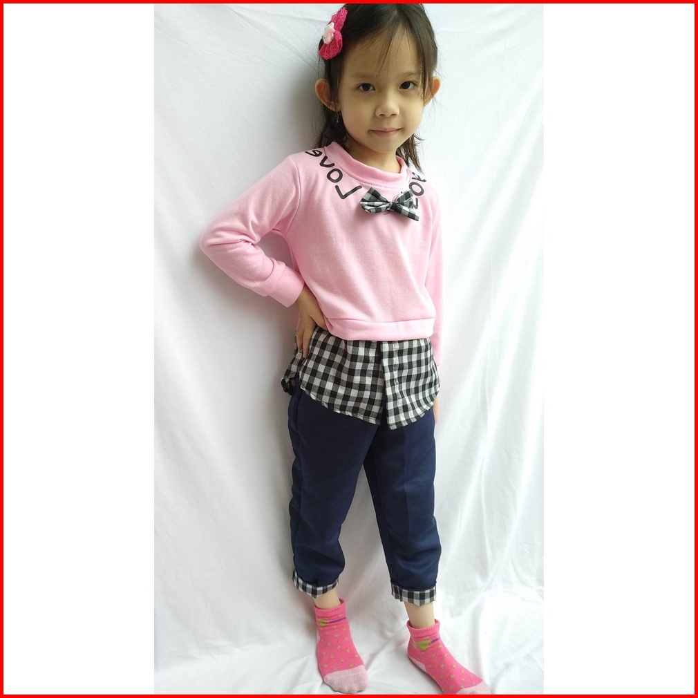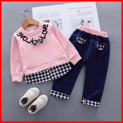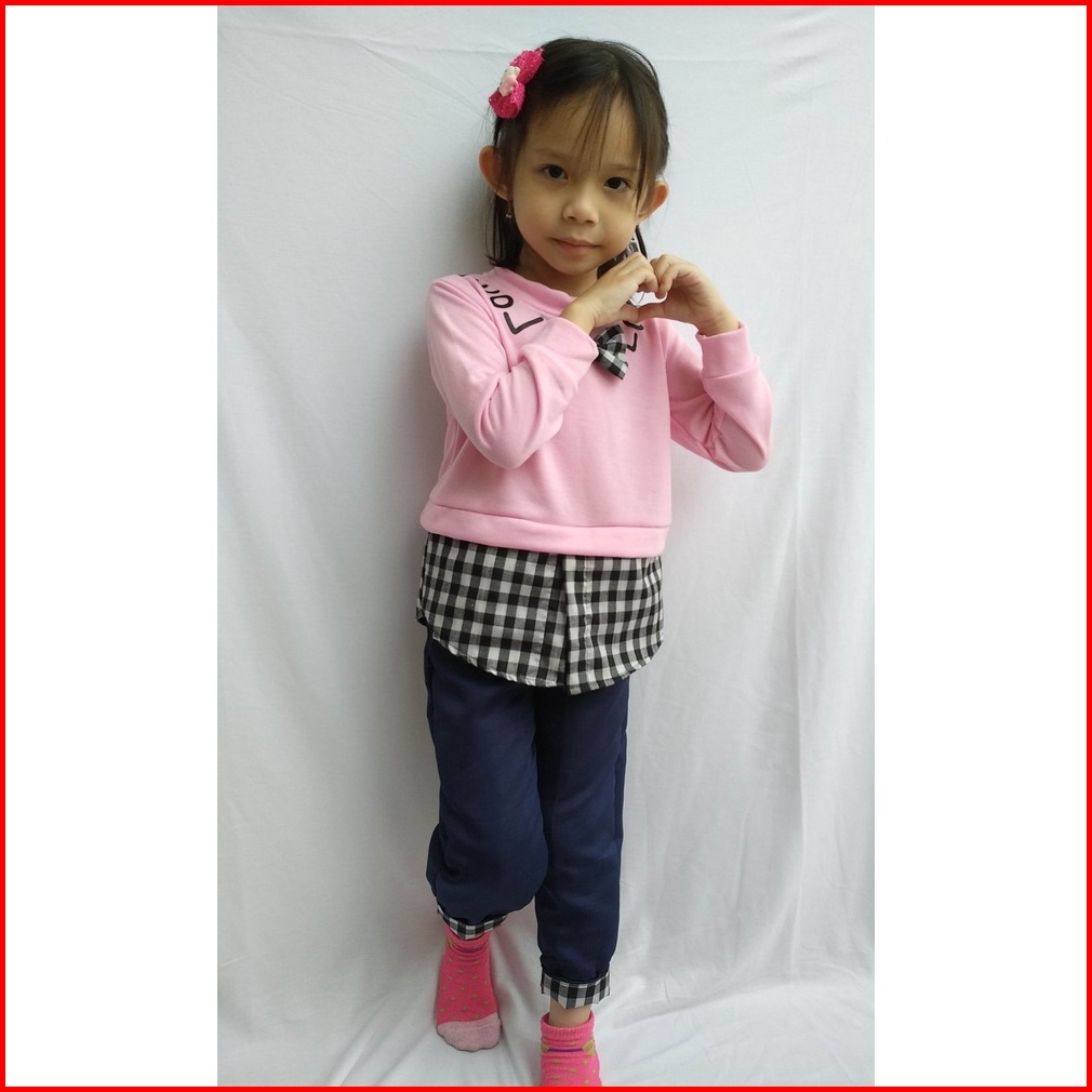 Rmshop Baju Anak Perempuan Setelan1 2 3 4 5 Tahun Import Plaid Love Set Fleece Balotelly Love Korea