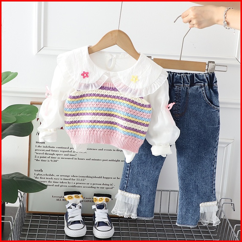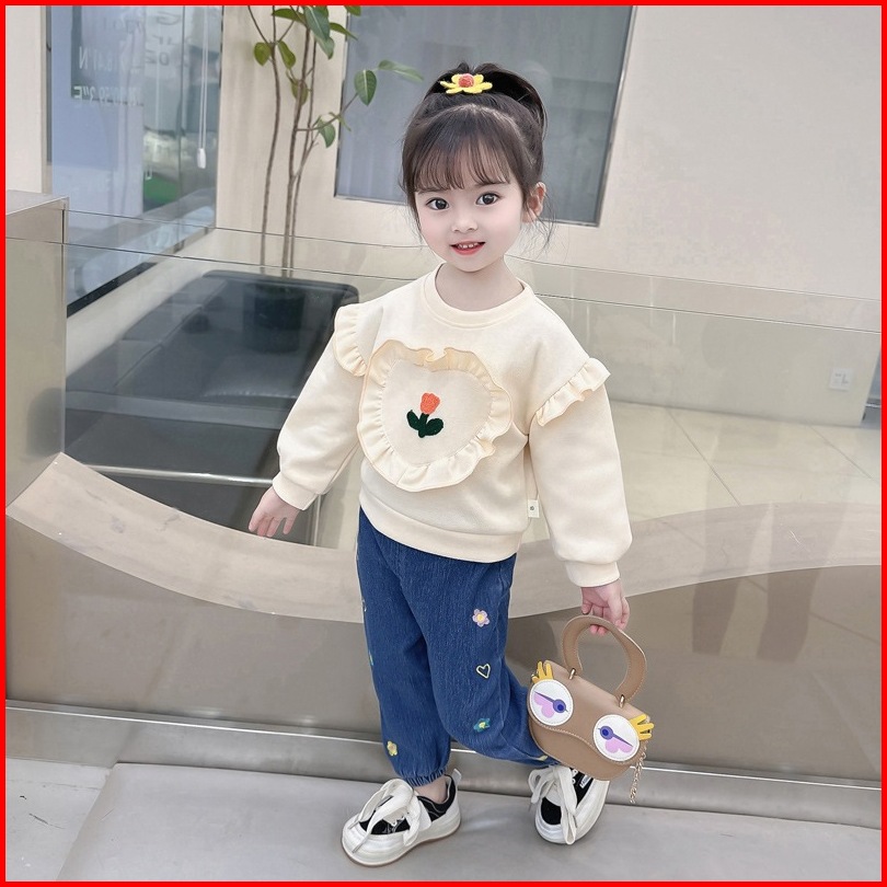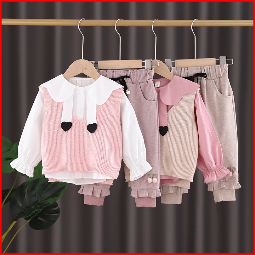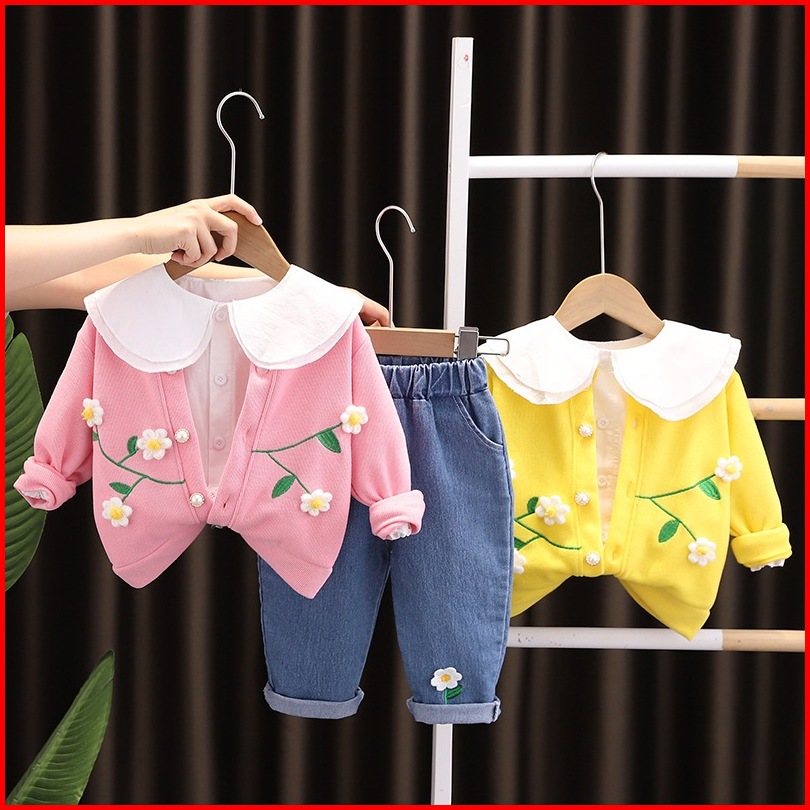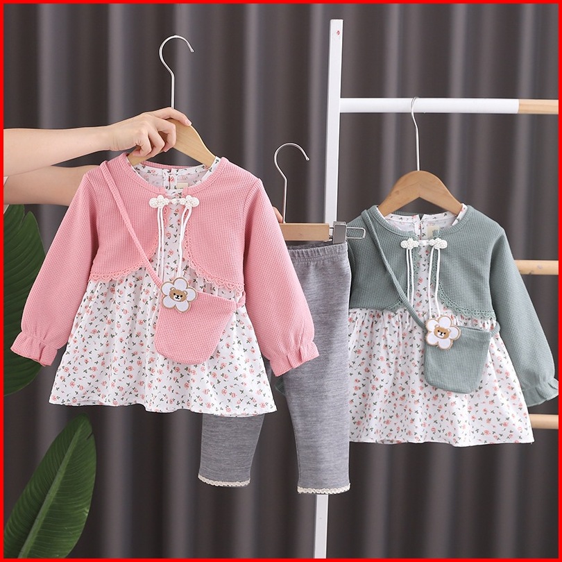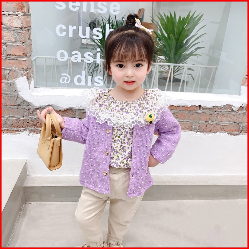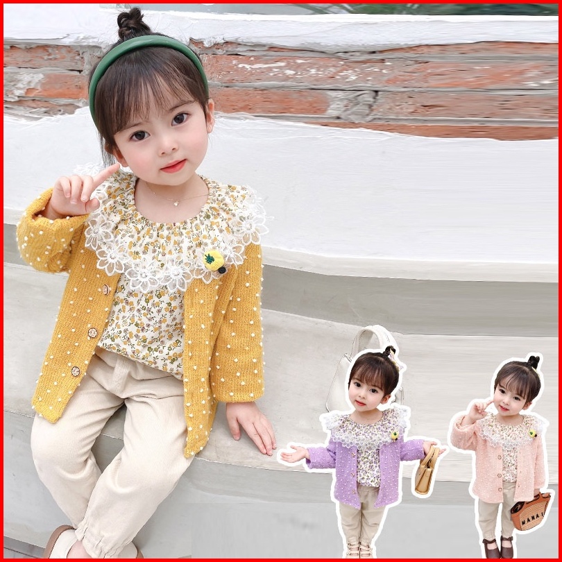 Setelan Anak Perempuan 4 In 1 Setelan Anak Cewek Import Set Baju Celana Anak Lucu Baju Celana Outer Kardigan Anak Lembut
