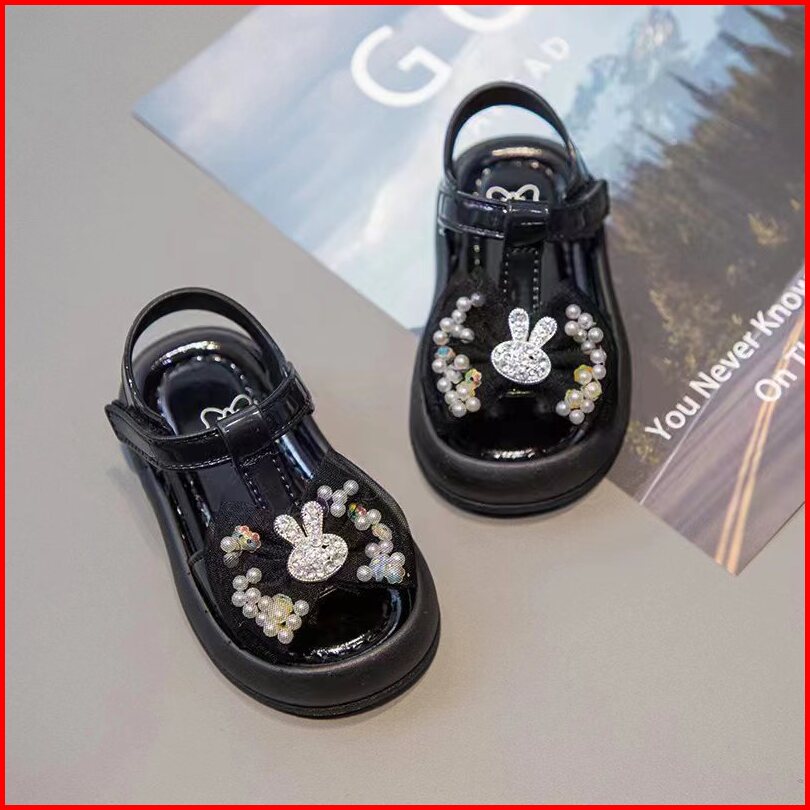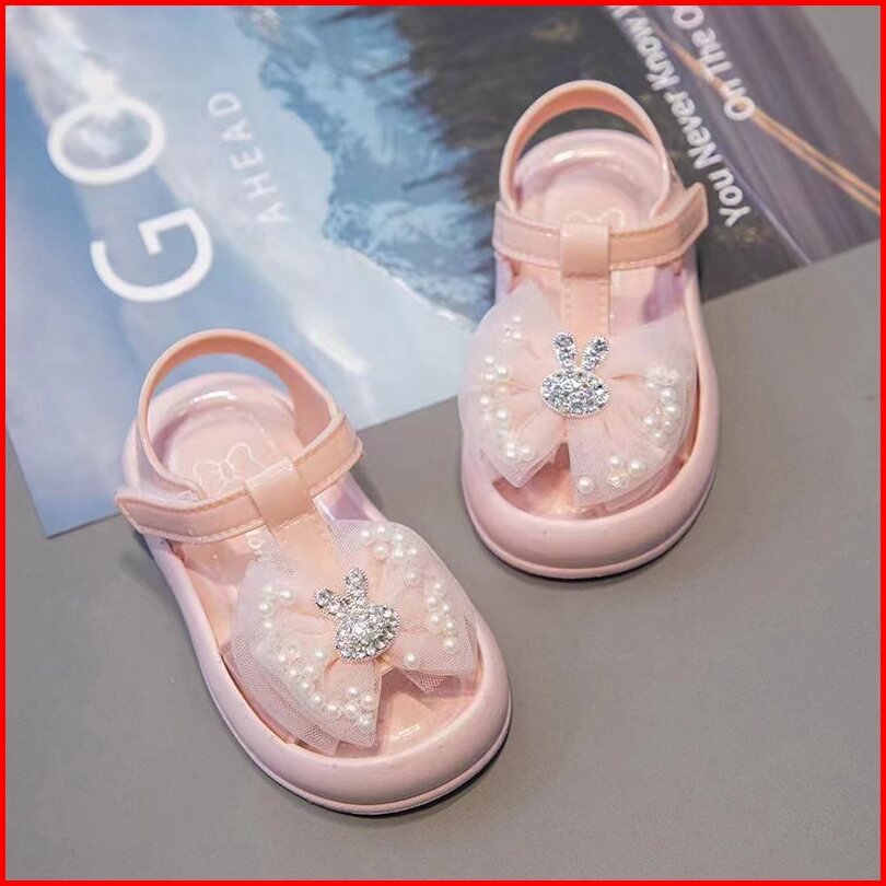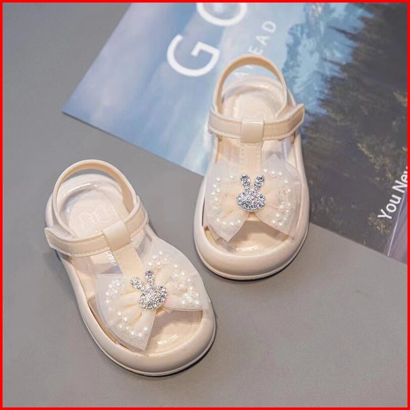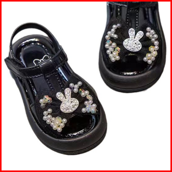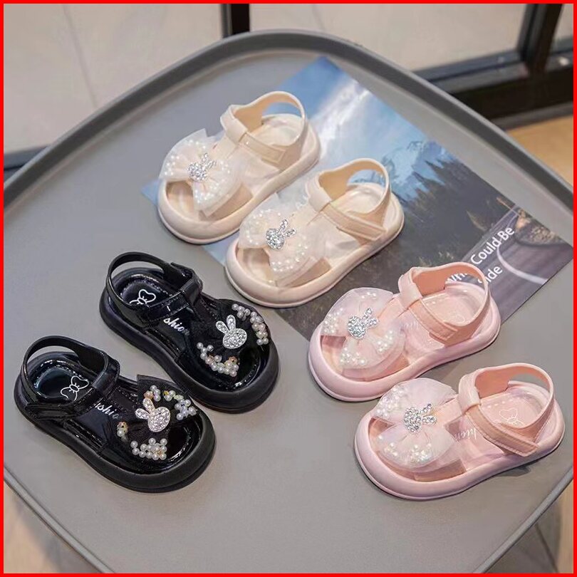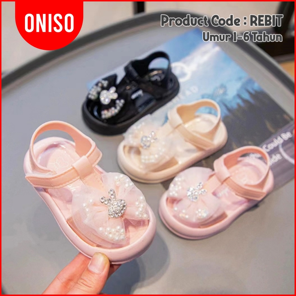 Oniso - Sandal Anak Perempuan Baby Model Sendal Karakter Kelinci Rabbit Bling Blink Warna Pink Hitam Cream Lucu 6 Bulan