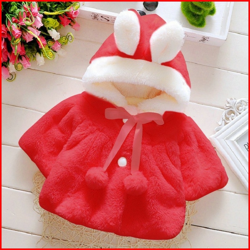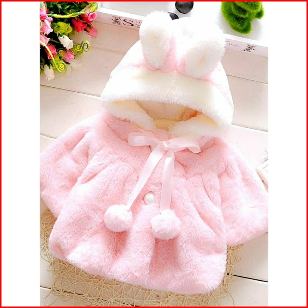 Jaket Bayi Anak Perempuan Import Bulu Tebal Mantel Hoodie Baby Girl
