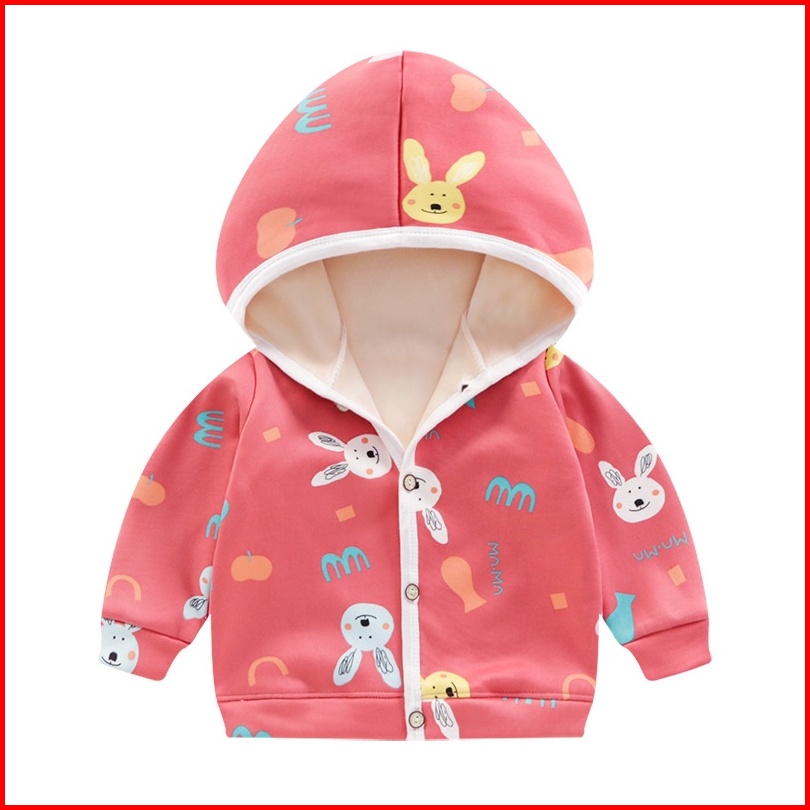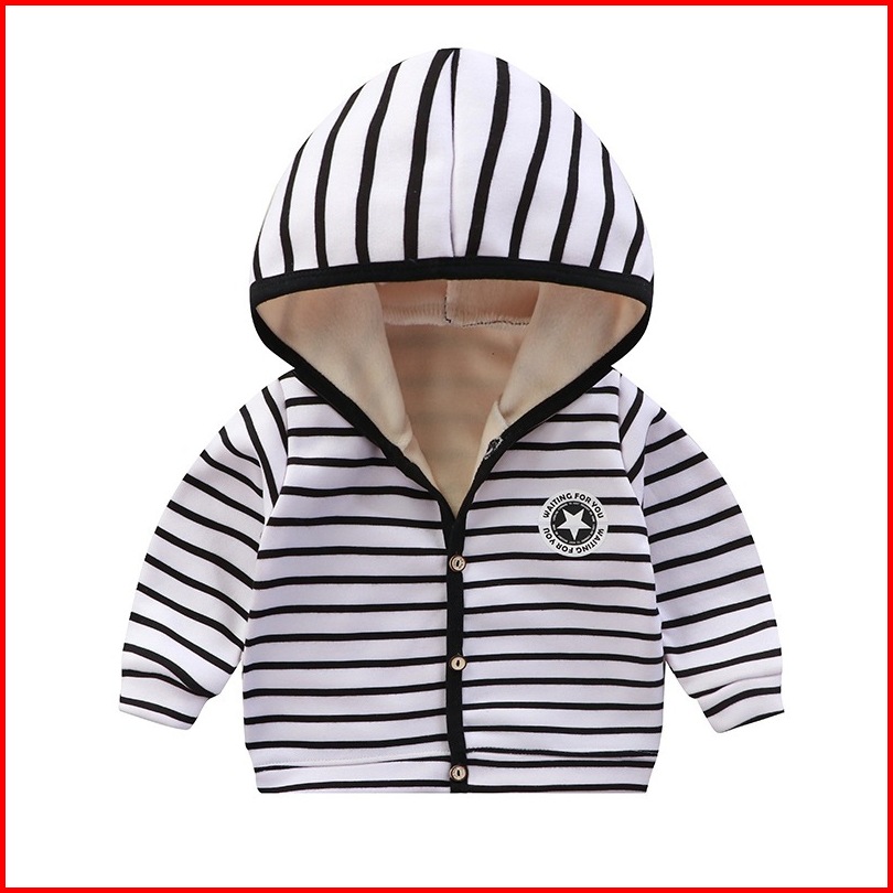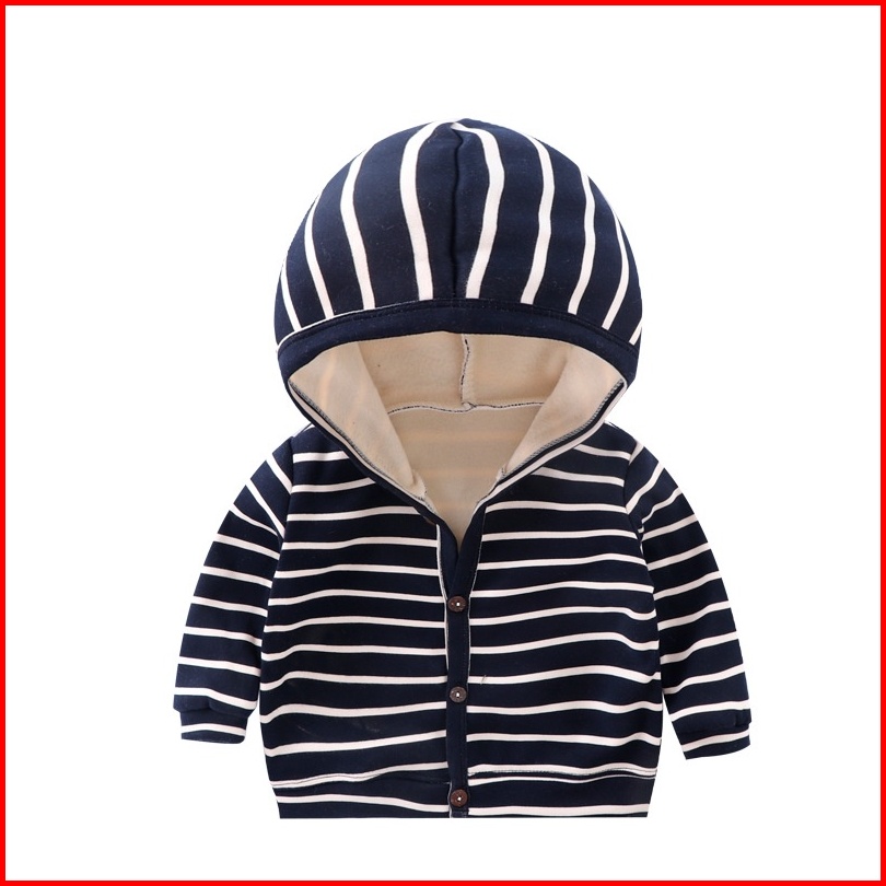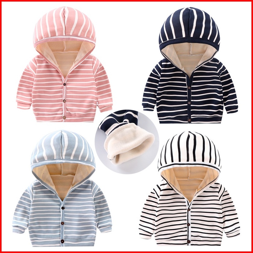 Jaket Hoodie Anak Bayi Perempuan Laki Laki Katun Fleece Premium Model Kancing Motif Garis 0-4 Tahun