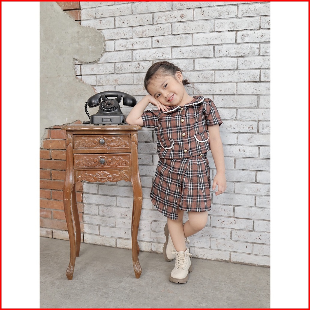 Tiffany Set - Setelan Pakaian Anak Perempuan Baju Blouse Cotton Rok Skort Korean Style Trendy Kekinian Murah Lucu Unik