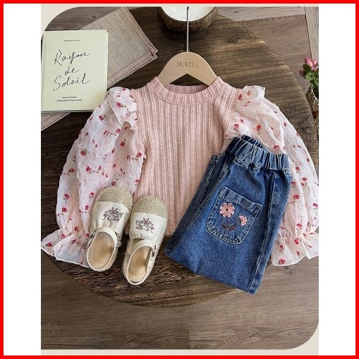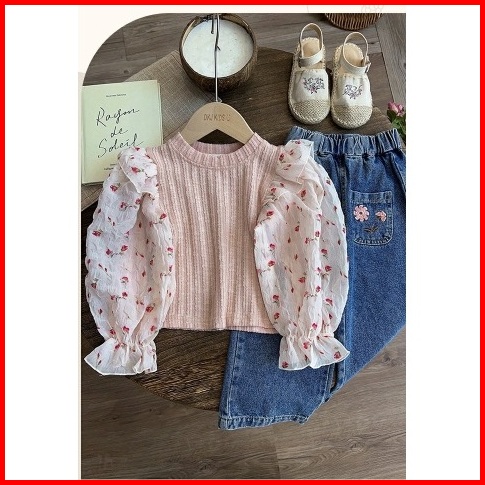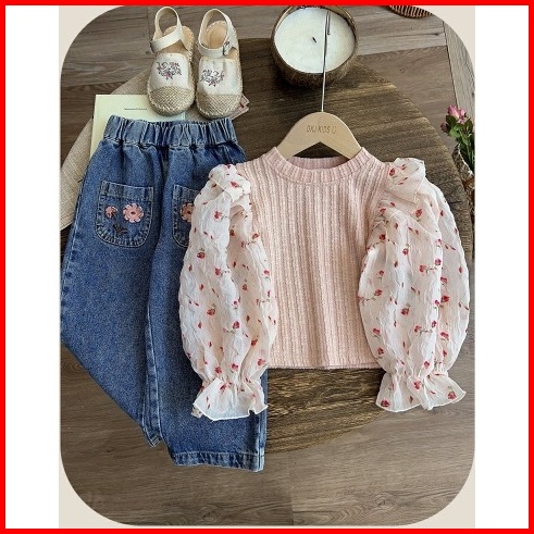 Setelan Sweater Lengan Rose Celana Jeans Size 100-140
