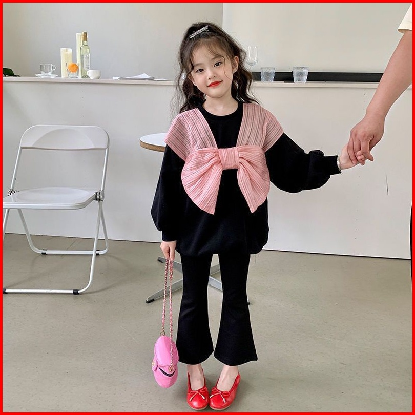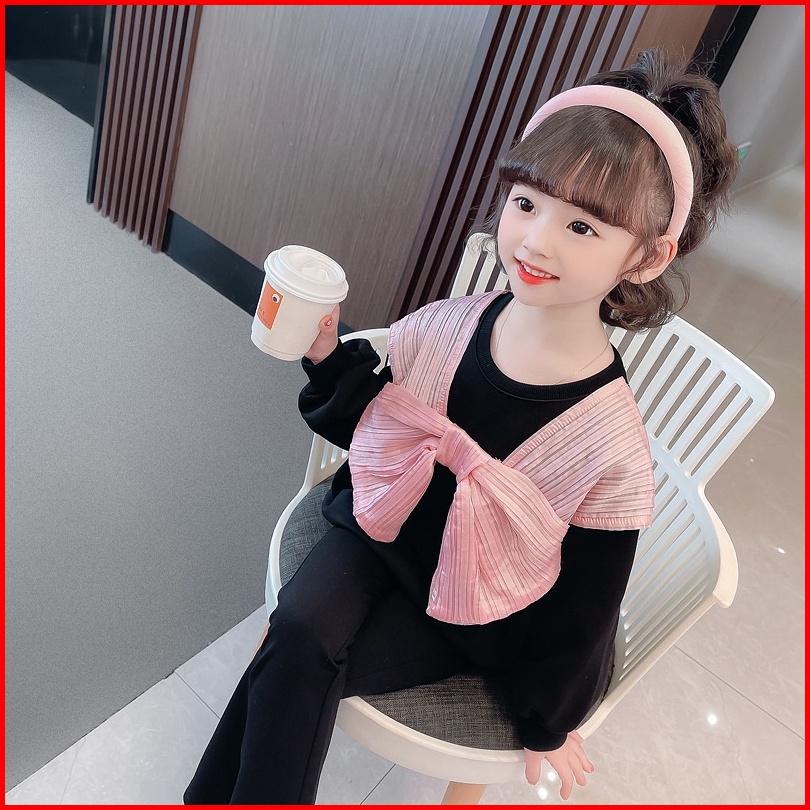 Cbj Setelan Anak Perempuan Cewek Model Pita Besar Pink Set Baju Anak Cewek Perempuanterbaru