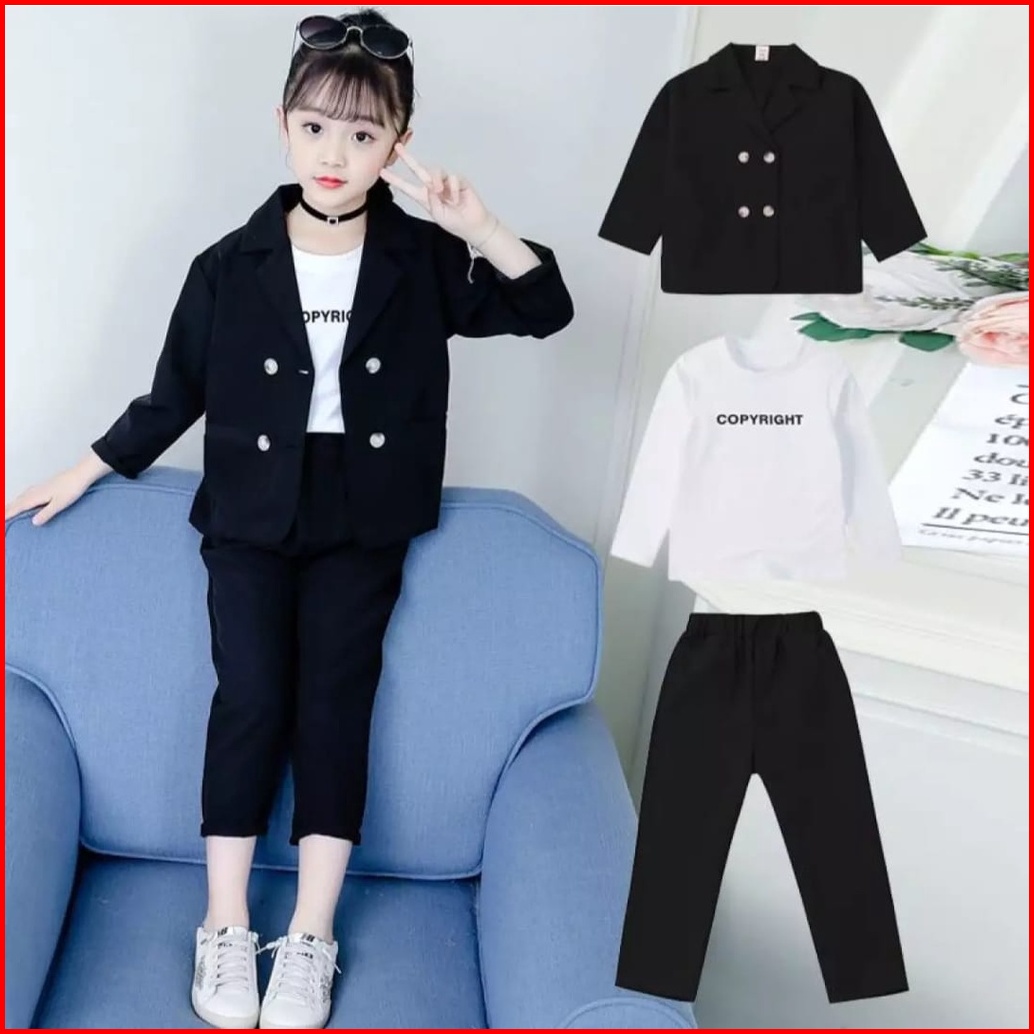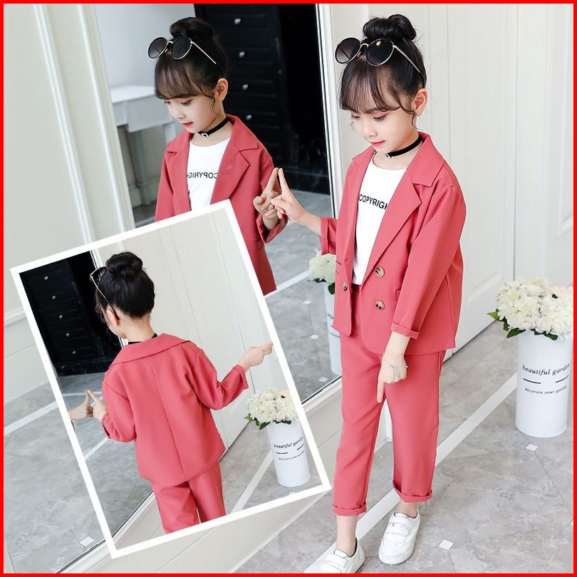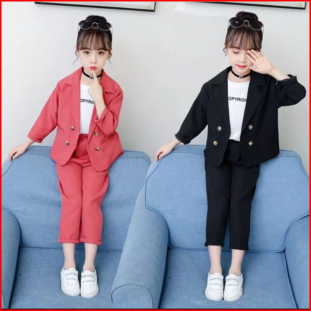 Up- Setelan Perempuan Korea Kids Reiko Terbaru Combi Blazer Umur 4- 7 Th Korea