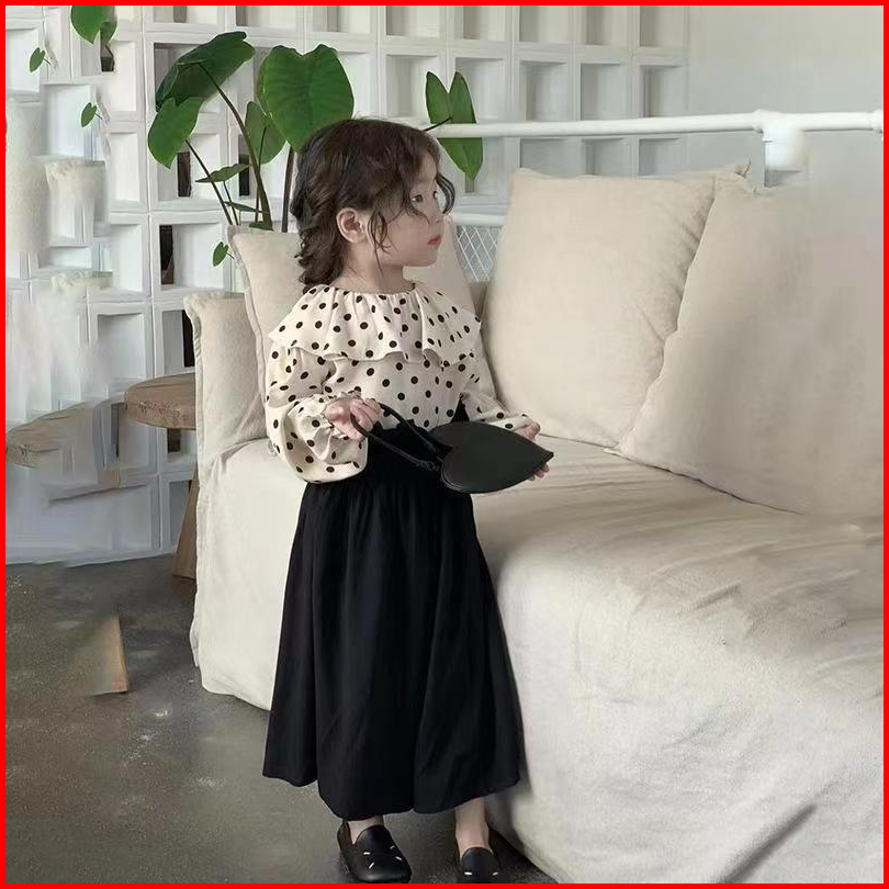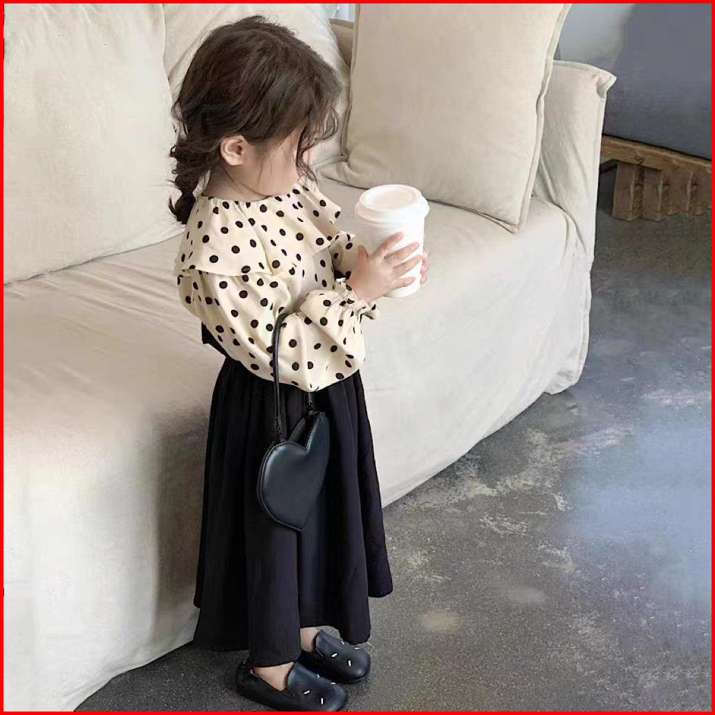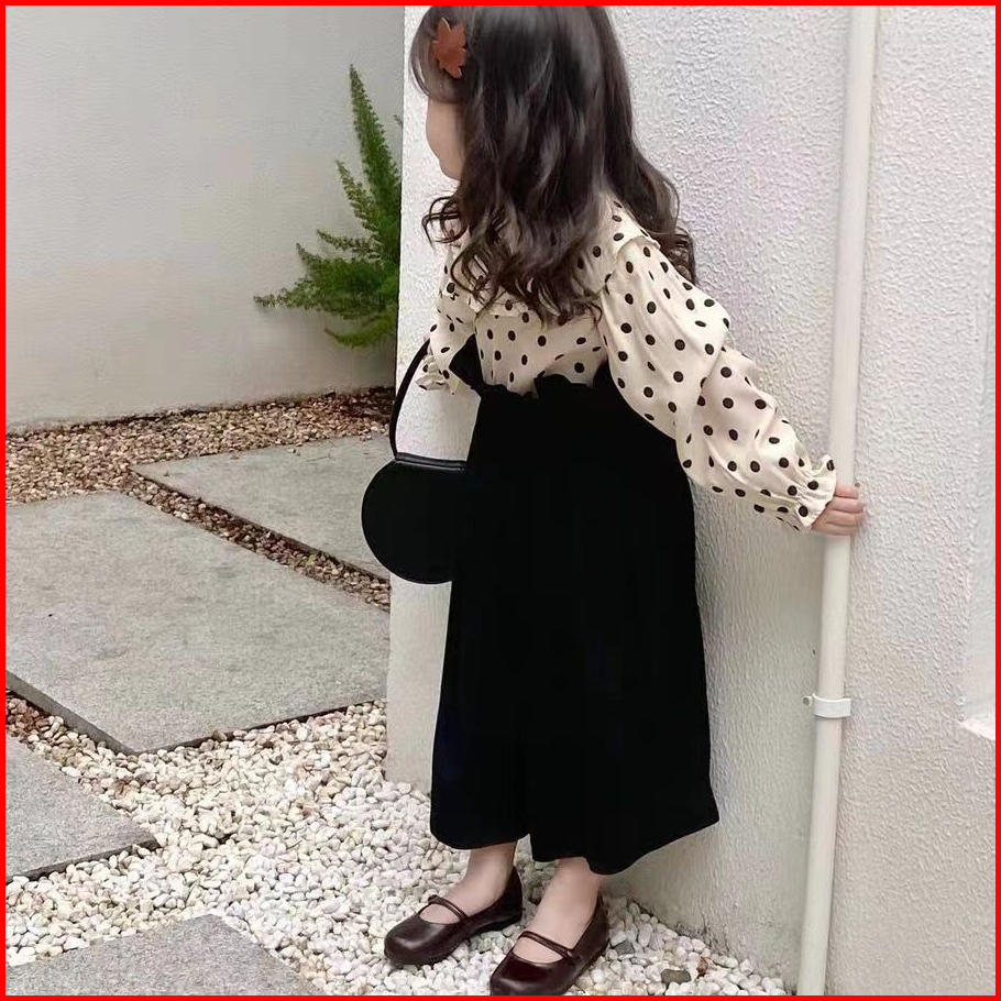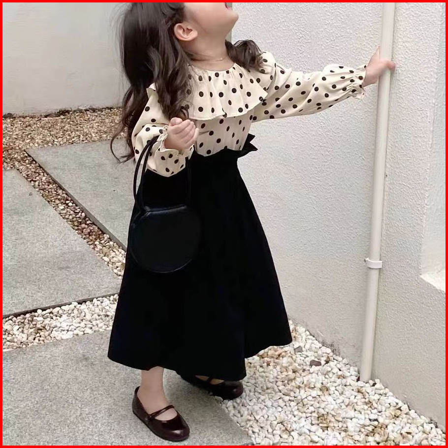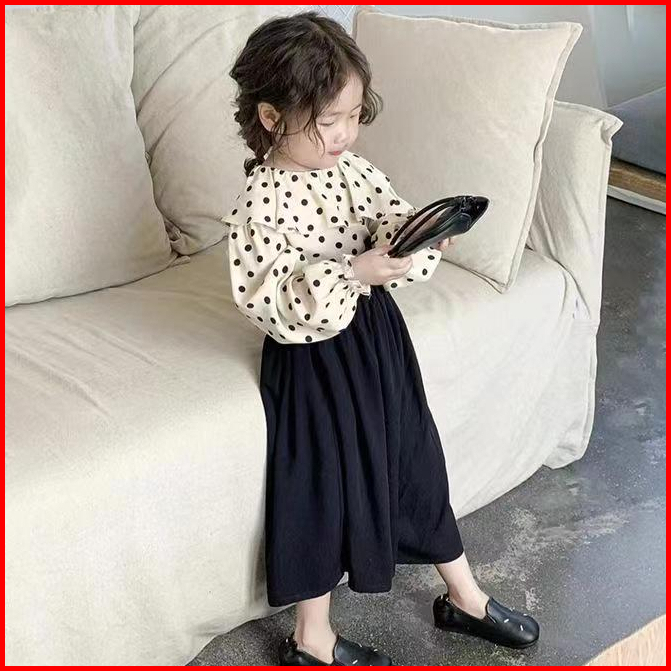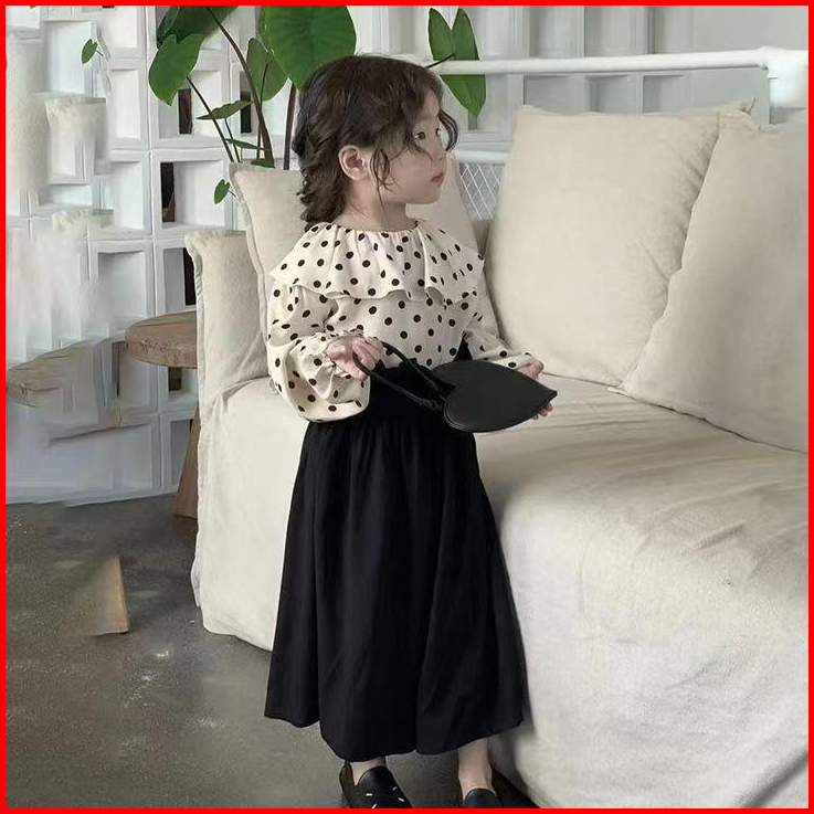 2024 Terbaru Korea Style Setelan Anak Perempuan Atasan Polka Dots Lengan Panjang Celana Culottes Panjang