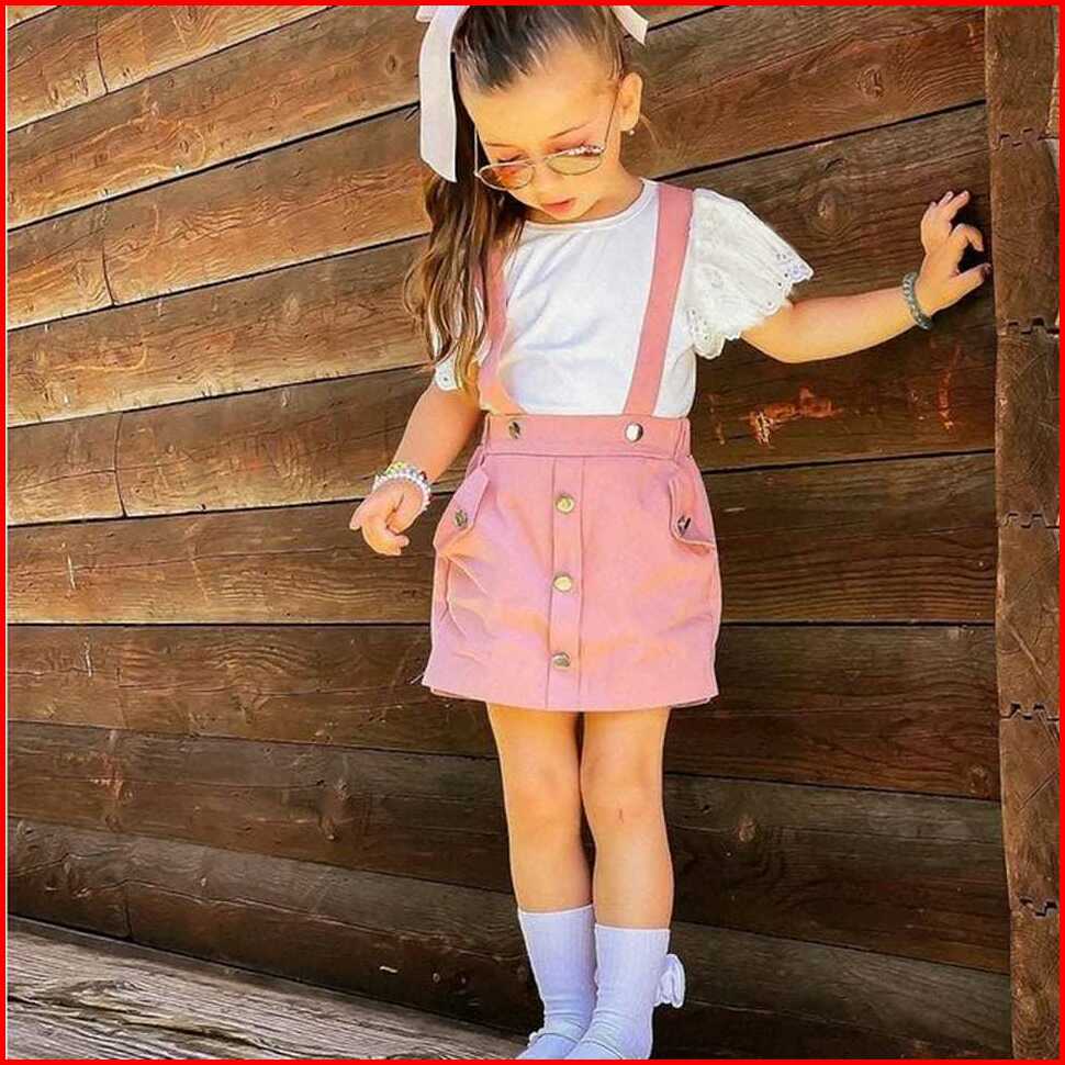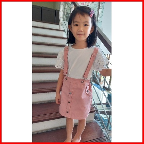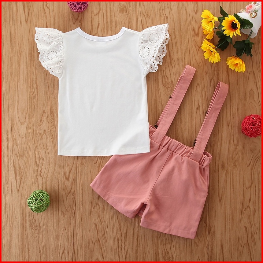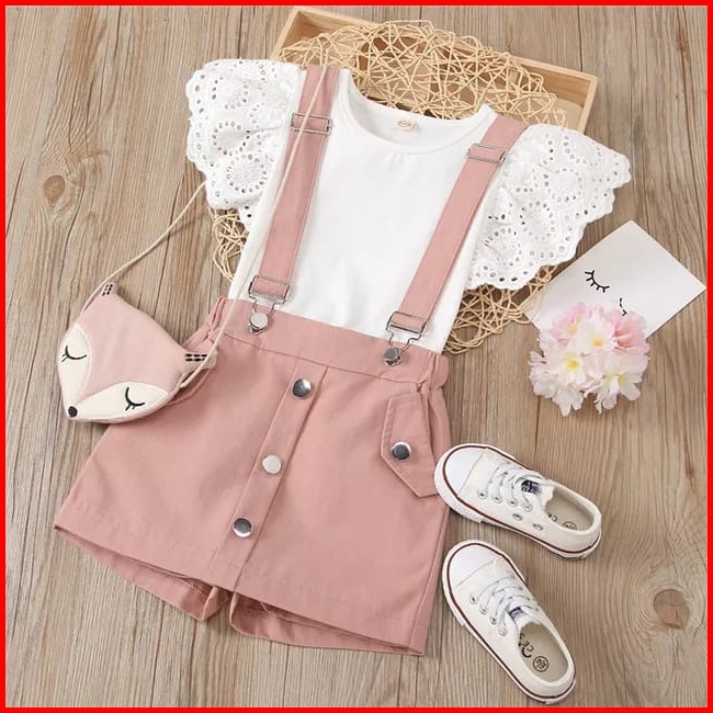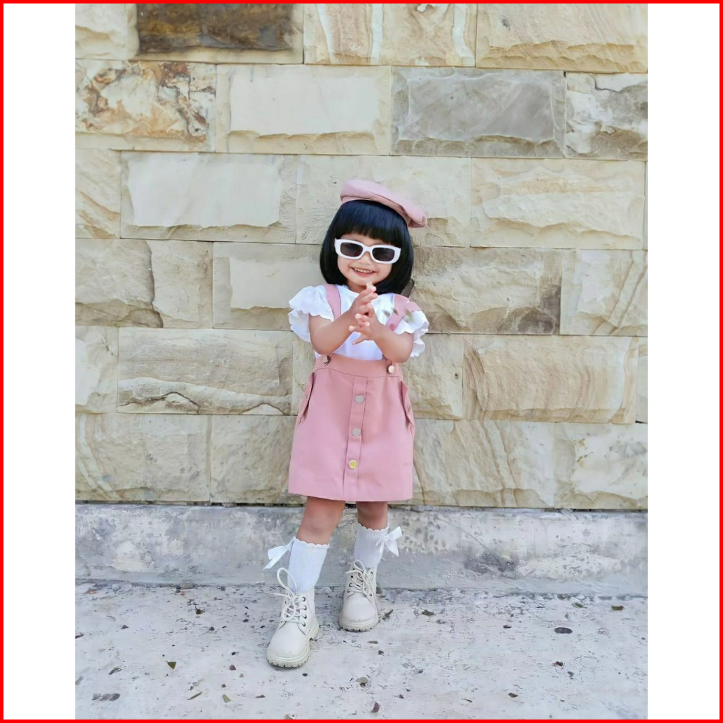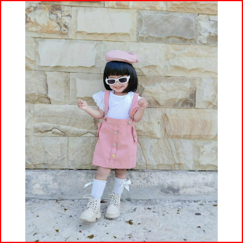 Qilla Pink Set Setelan Anak Perempuan Import Set Overall Pendek Anak Kaos Lengan Pendek Korean Style Usia 1-7tahun