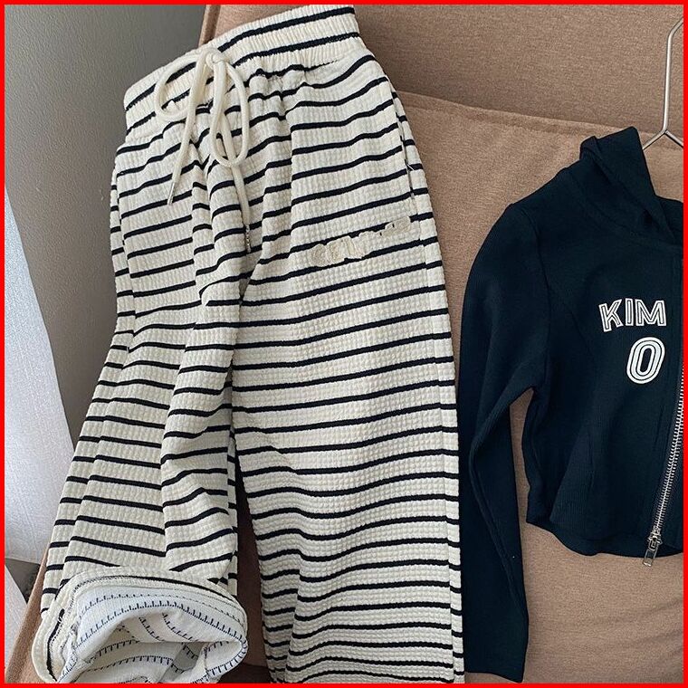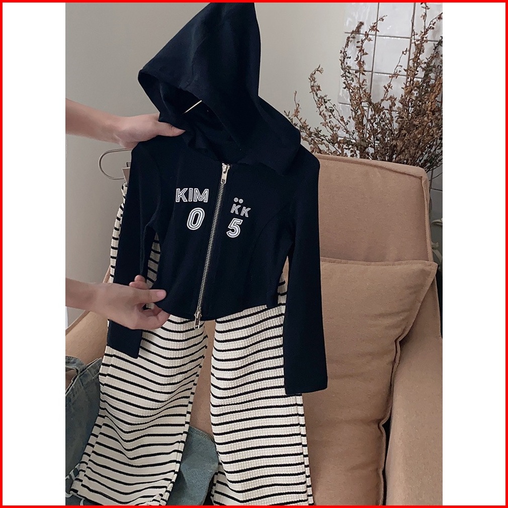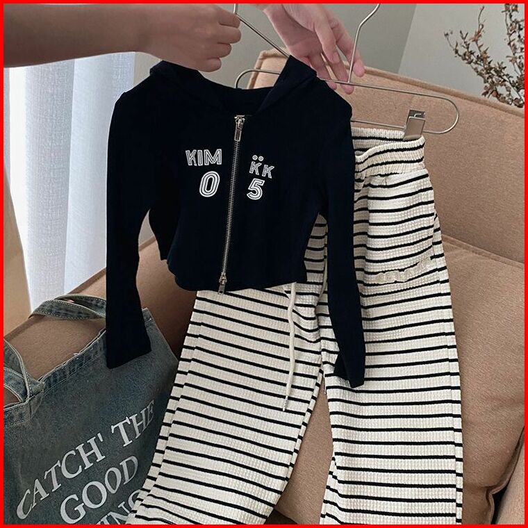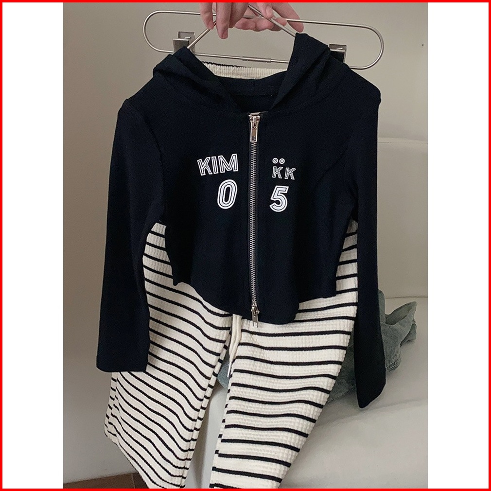 Cacoa 1-7 Tahun One Set 2 In 1 Baju Ritsleting Lengan Panjang Dan Celana Panjang Bergaris Style Korea Berkualitas