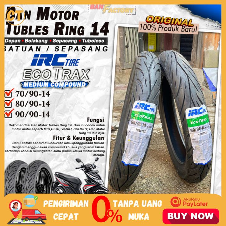BAN MOTOR IRC ECOTRAX Ring 14 Tubeless Ban Tubles Motor Depan Belakang Matic Beat Vario Scoopy PCX AEROX Ring 14 Tubles