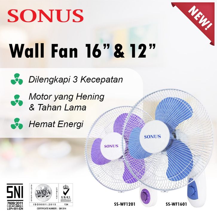 SONUS Kipas Angin Dinding 16 Inch SS-WF-1601 Kipas Angin Dinding Sanex Wall Fan Kipas Angin Dinding 12 Inch Original