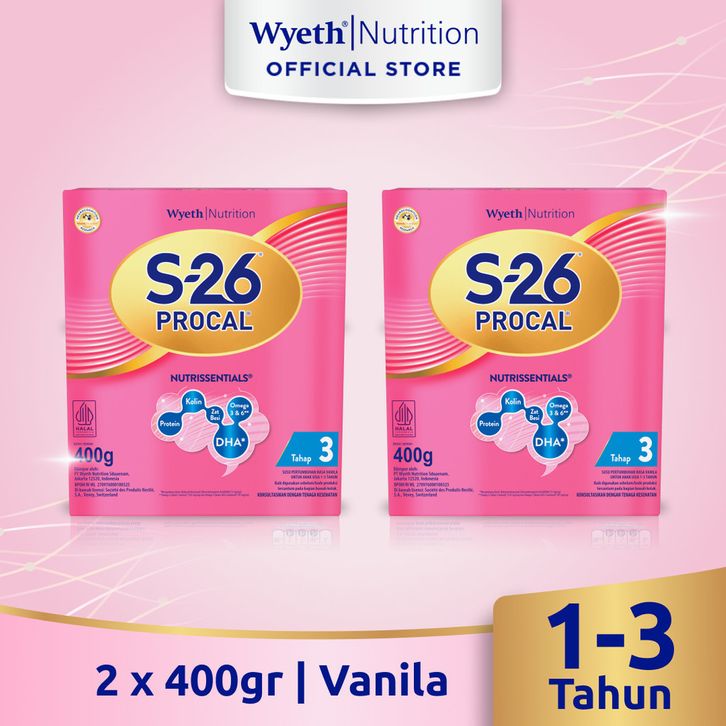 S-26 S26 Procal Tahap 3 Vanila Susu Pertumbuhan Anak Usia 1-3 Tahun, Kotak 400 gr x 2 Pcs