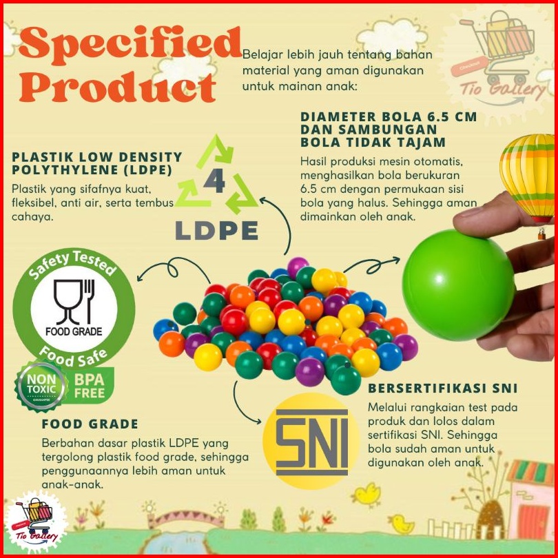 Mandi Bola Anak Versi Cipung Tropical Orange Kualitas Sni Isi 100pcs 1kg