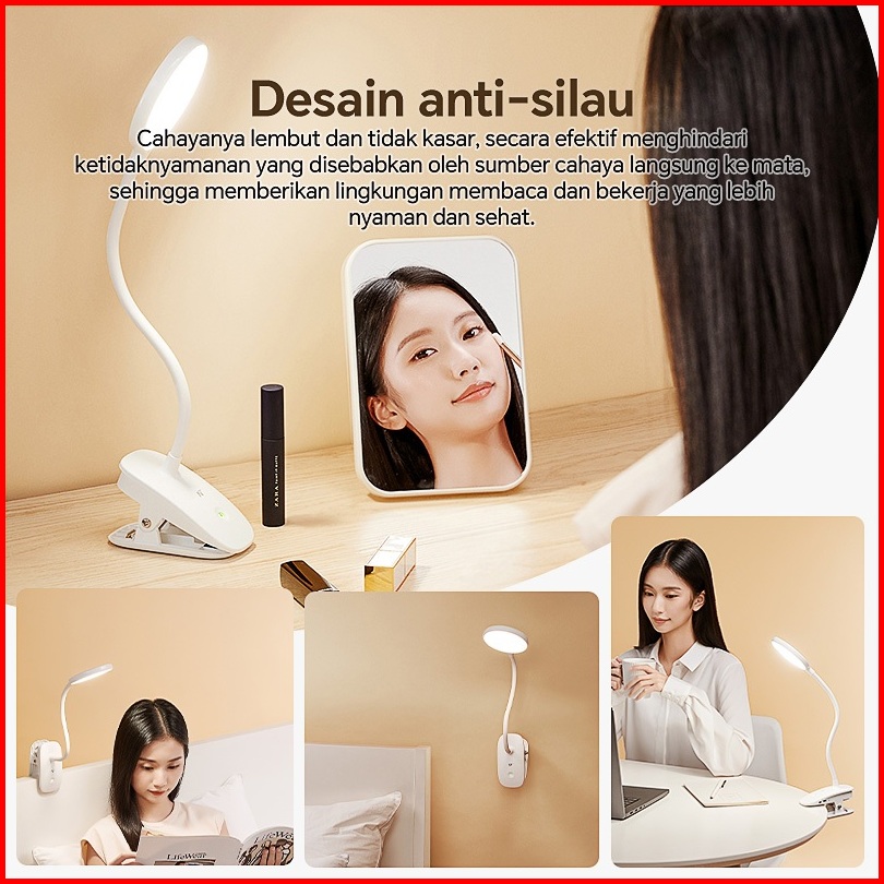 2 In 1 Lampu Nirkabel Jepit Lampu Belajar 3 Warna Lampu Mata Isi Ulang Led Multi-fungsi Sentuh Lampu Samping Tempat Tidu