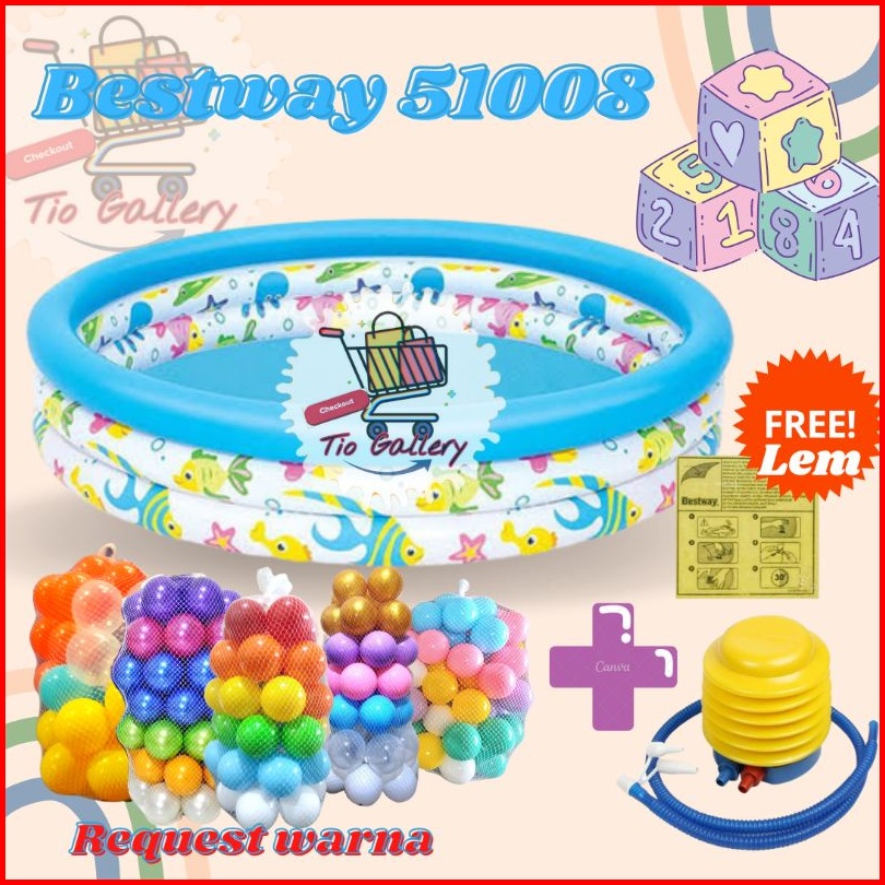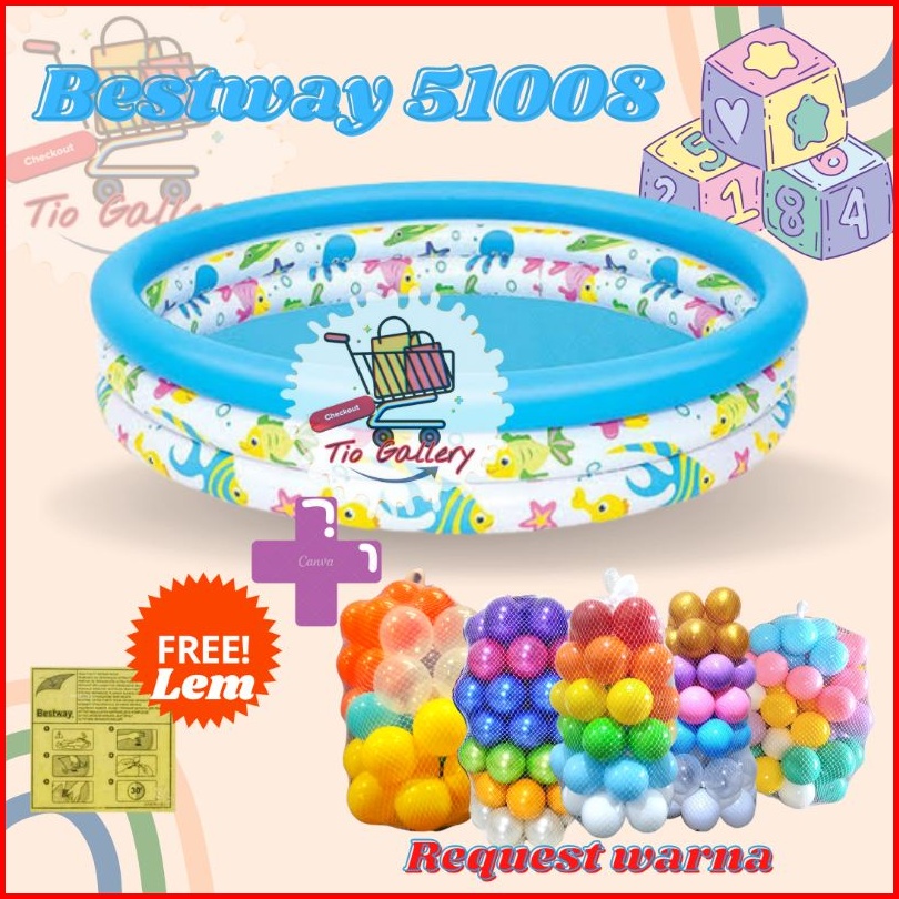 Kolam Renang Anak Dan Bayi Bestway 51008 Uk 102 X 25cm - Paket Kolam Mandi Bola Free Lem