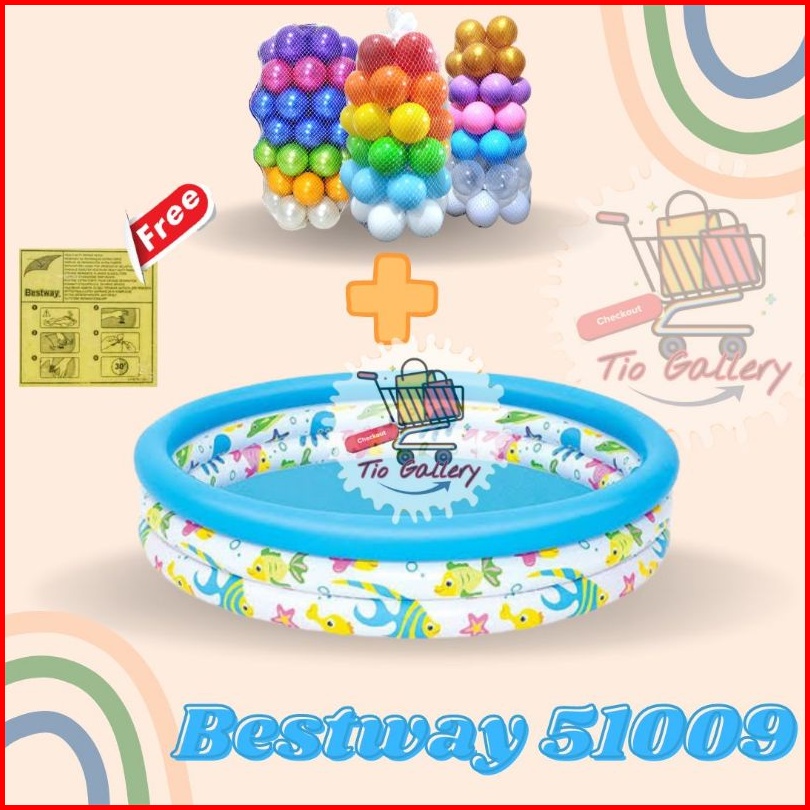 Kolam Renang Anak Dan Bayi Bestway 51009 Uk 122 X 25cm - Paket Kolam Mandi Bola Free Lem