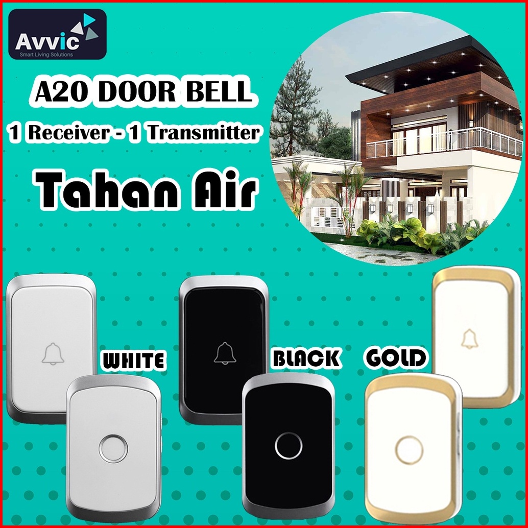 Avvic X Cacazi A20 Bel Pintu Rumah Wireless Doorbell 1 Receiver 1 Transmitter Waterproof