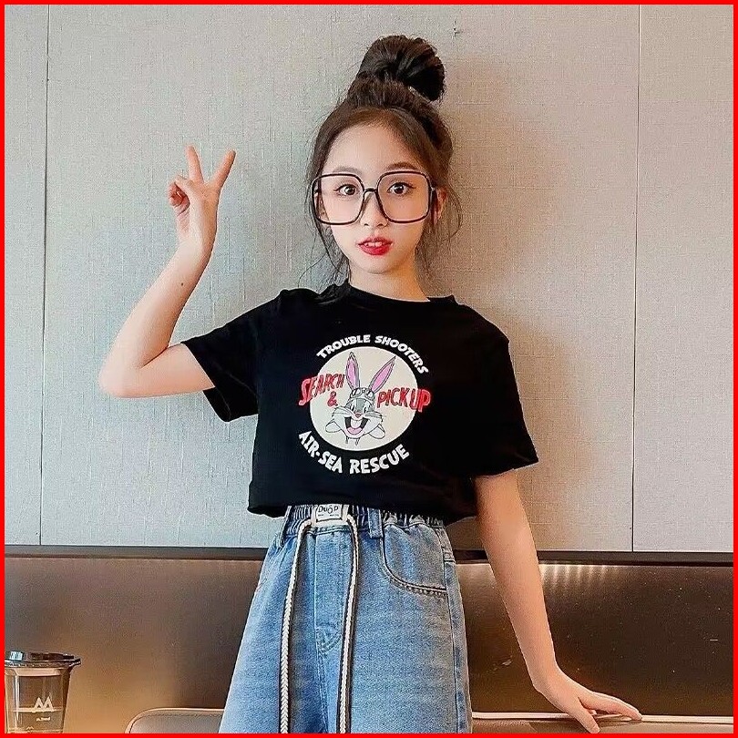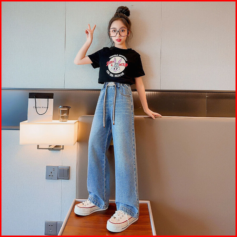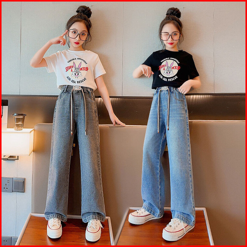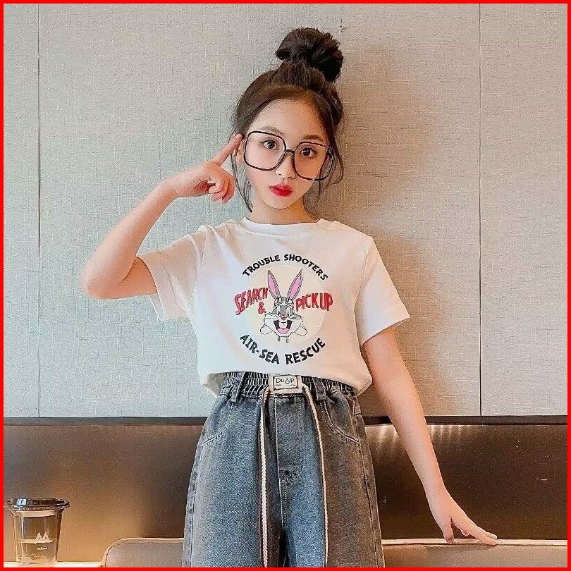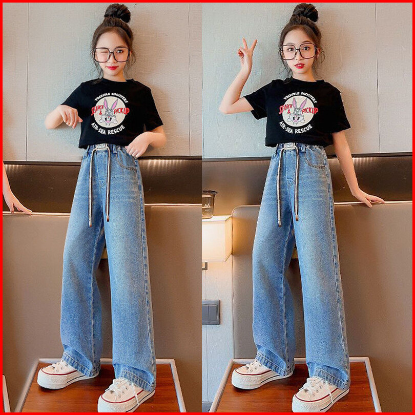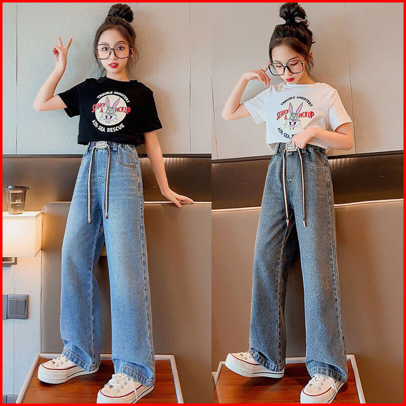 Setelan Anak Perempuan Import Size Tanggung Model Crop Jeans Tali Air Sea Rescue Pinggang Karet