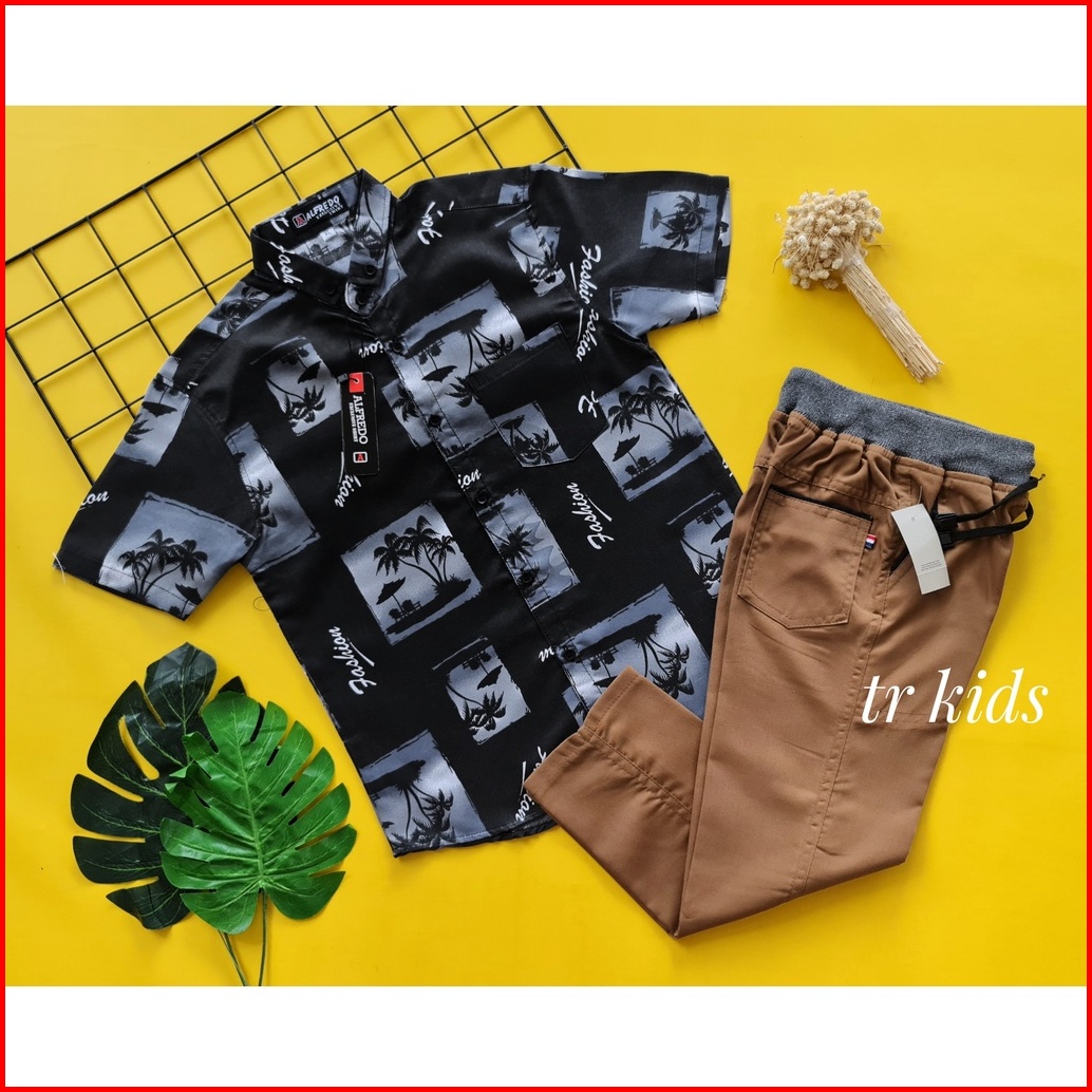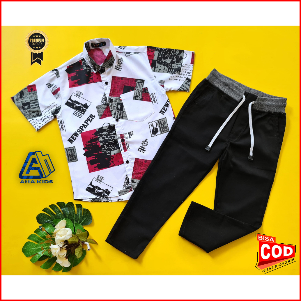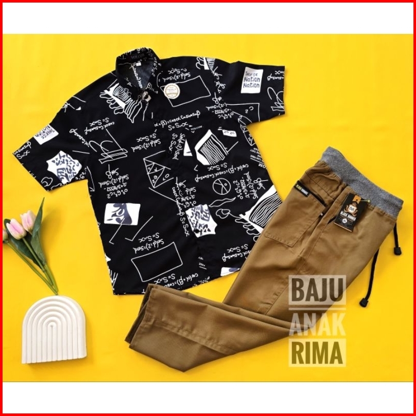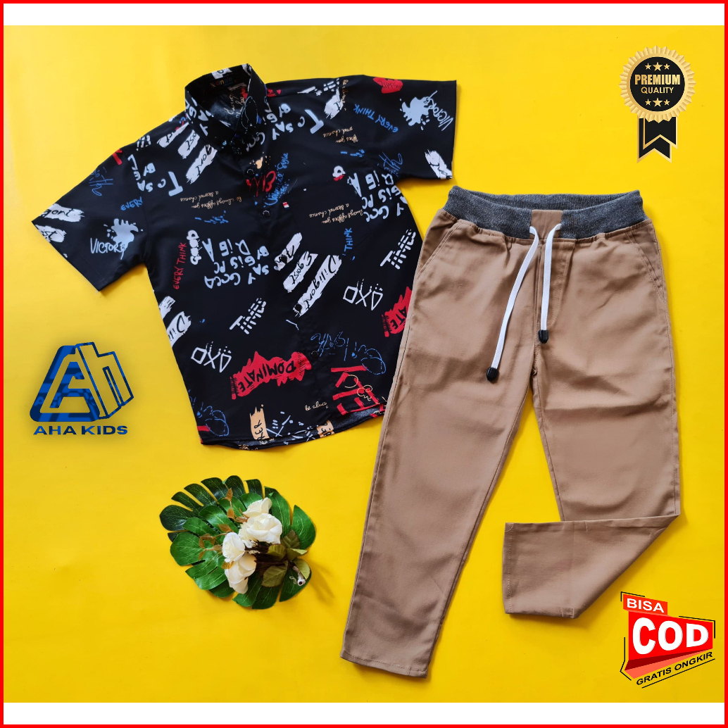 Gratis Ongkir Pilih Setelan Kemeja Motif Lengan Pendek Keren Celana Chinos Panjang Anak Usia 2-12 Tahun