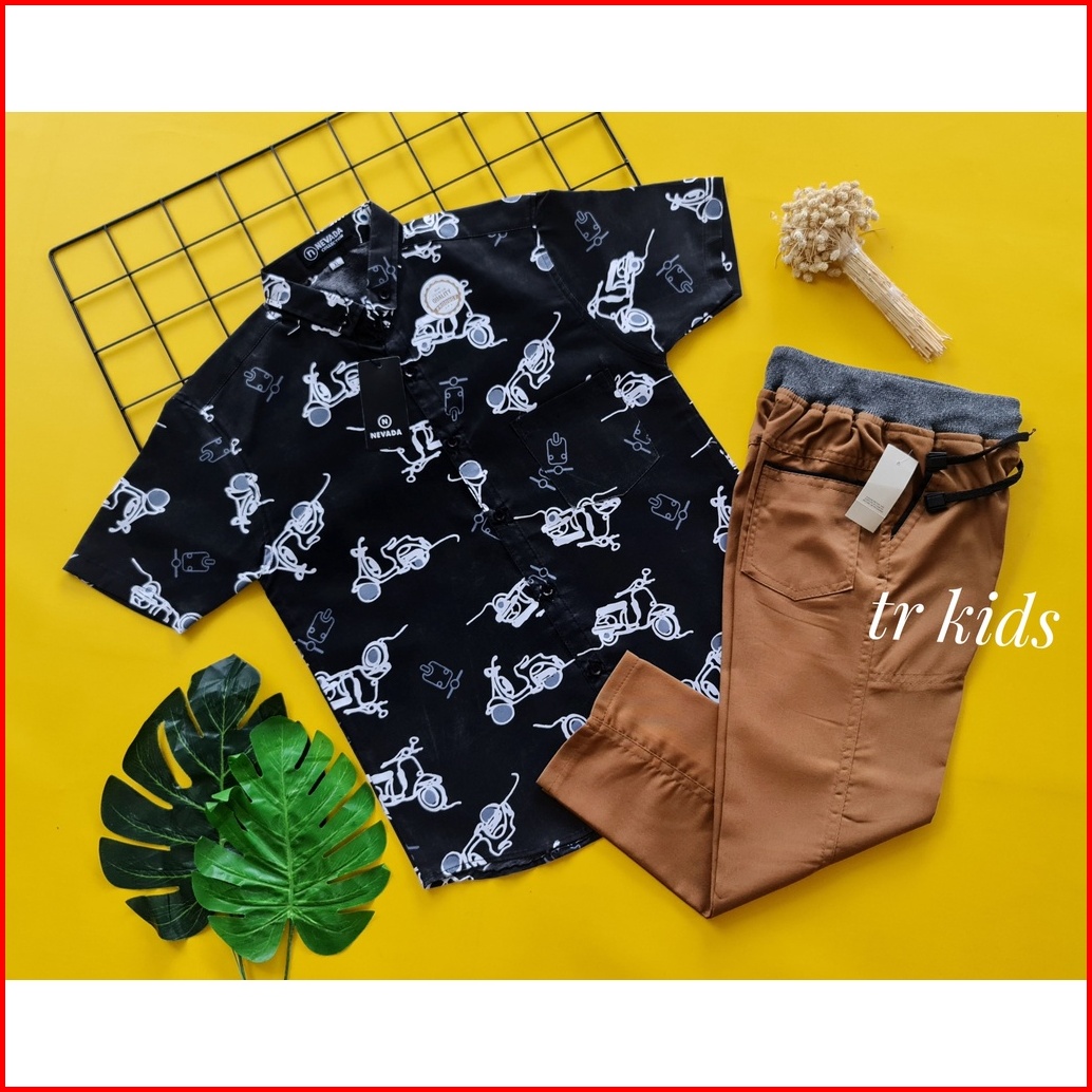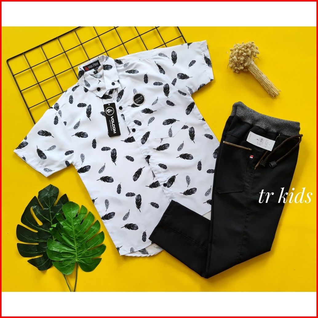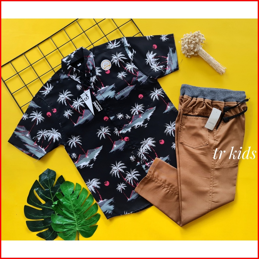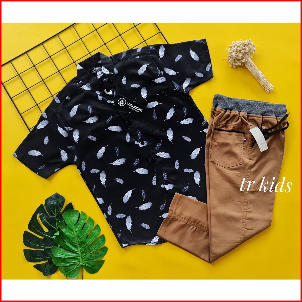 Gratis Ongkir Pilih Setelan Kemeja Motif Lengan Pendek Keren Celana Chinos Panjang Anak Usia 2-12 Tahun