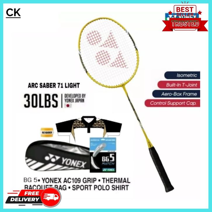 RAKET BADMINTON YONEX ARCSABER / ARC SABER 71 LIGHT 5U G5 TARIKAN 30 LBS ORIGINAL GRATIS TAS RAKET + BAJU KAOS