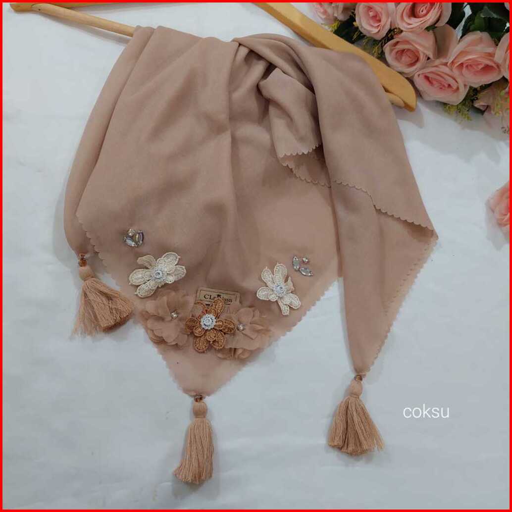 Jilbab Segiempat Clarissa Payet Bunga Terbaru Hijab Populer Motif Simple Modern