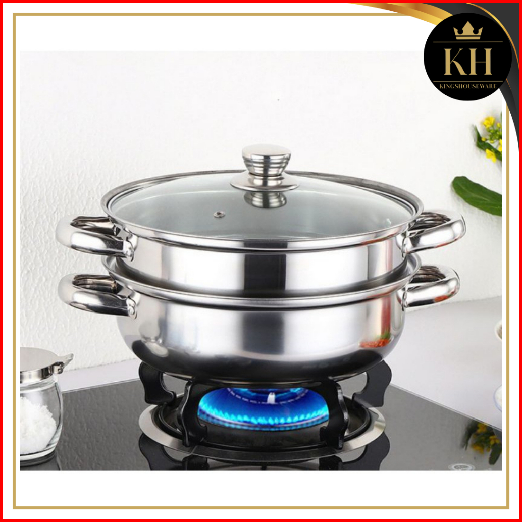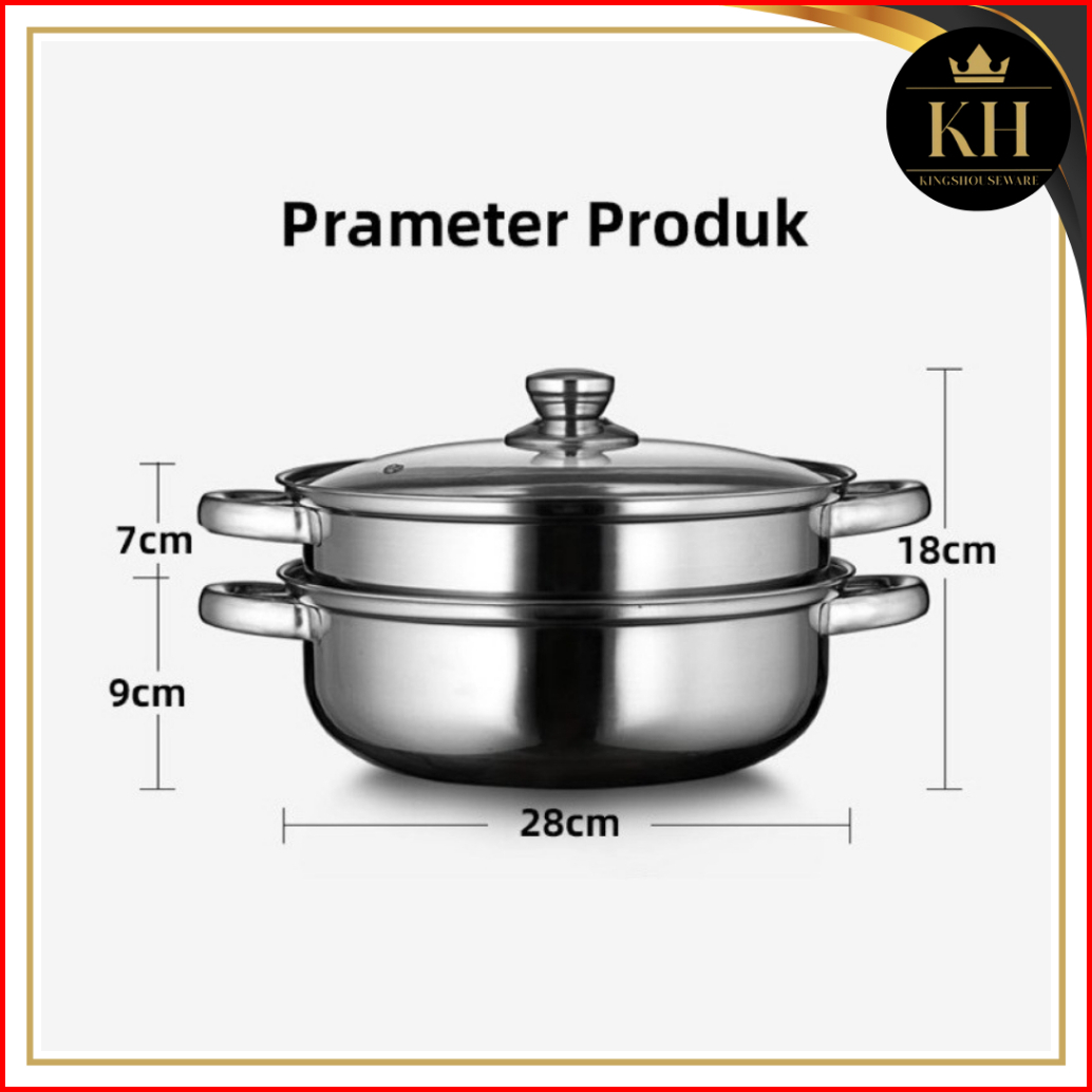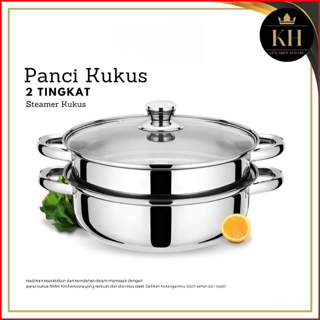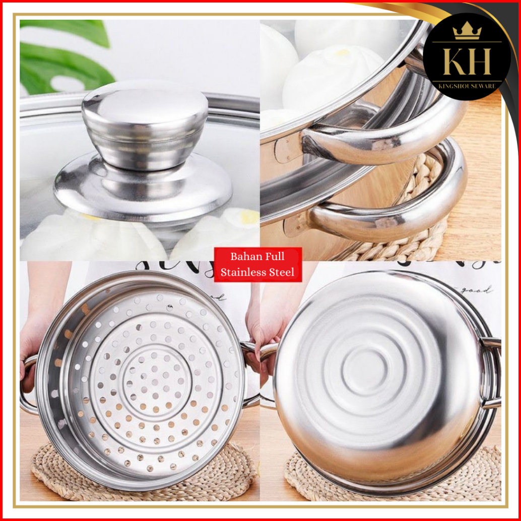 Kh - Steamer Steinless Panci Kukus 2 Tingkat - Alat Kukus 4 Kuping Dengan Tutup Kaca - Kukus Siomay Berkualitas
