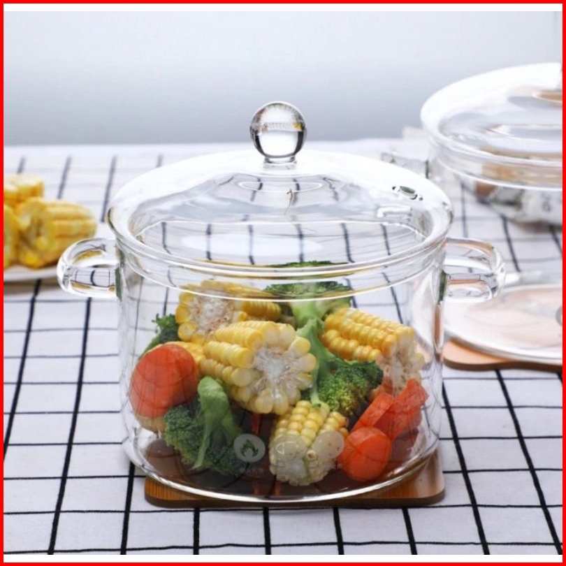 Panci Masak Kaca Tahan Panas Stewing Soup Pot Borosilicate Glass Panci Sop Transparan