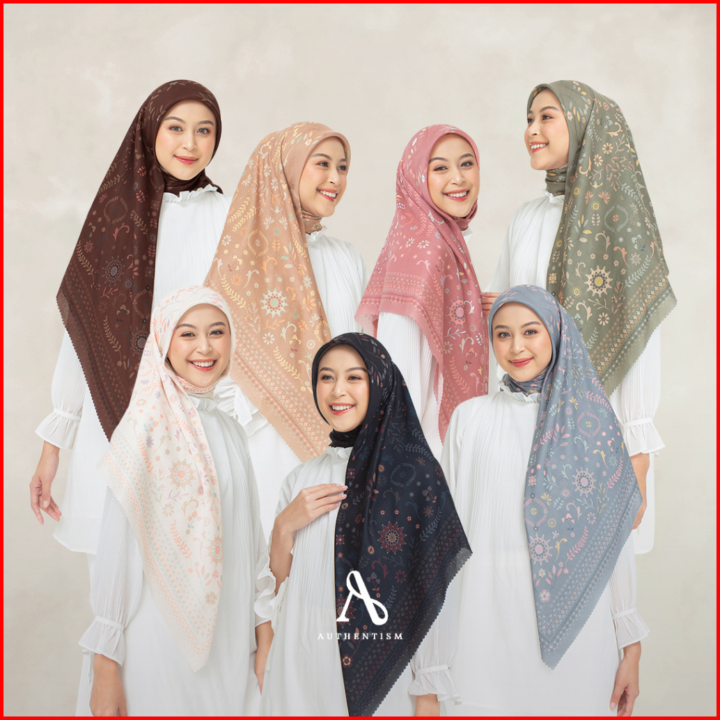 Authentism Id Charita Series Kerudung Kerja Kantor Casual .segi Empat Voal Ultrafine Lasercut Premium Hijab Motif Dastan