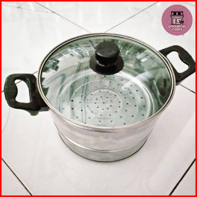 Panci Dandang Kukus Steamer Uk 22 24 26 Stenlis Tutup Kaca Kue Bolu Brownies Bronis