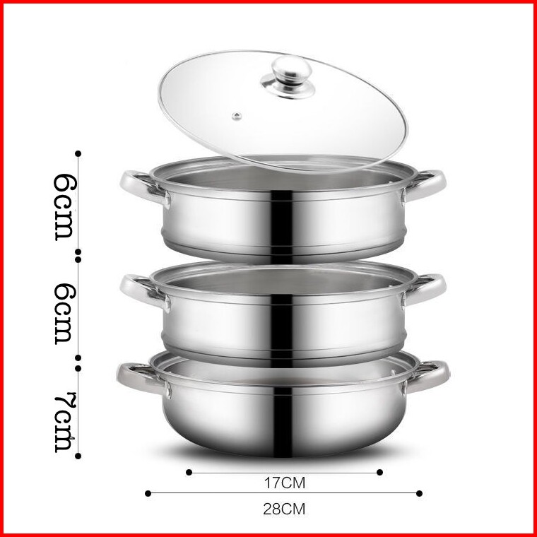 Panci Kukus 3 Susun Stainless 28cm Multifungsi
