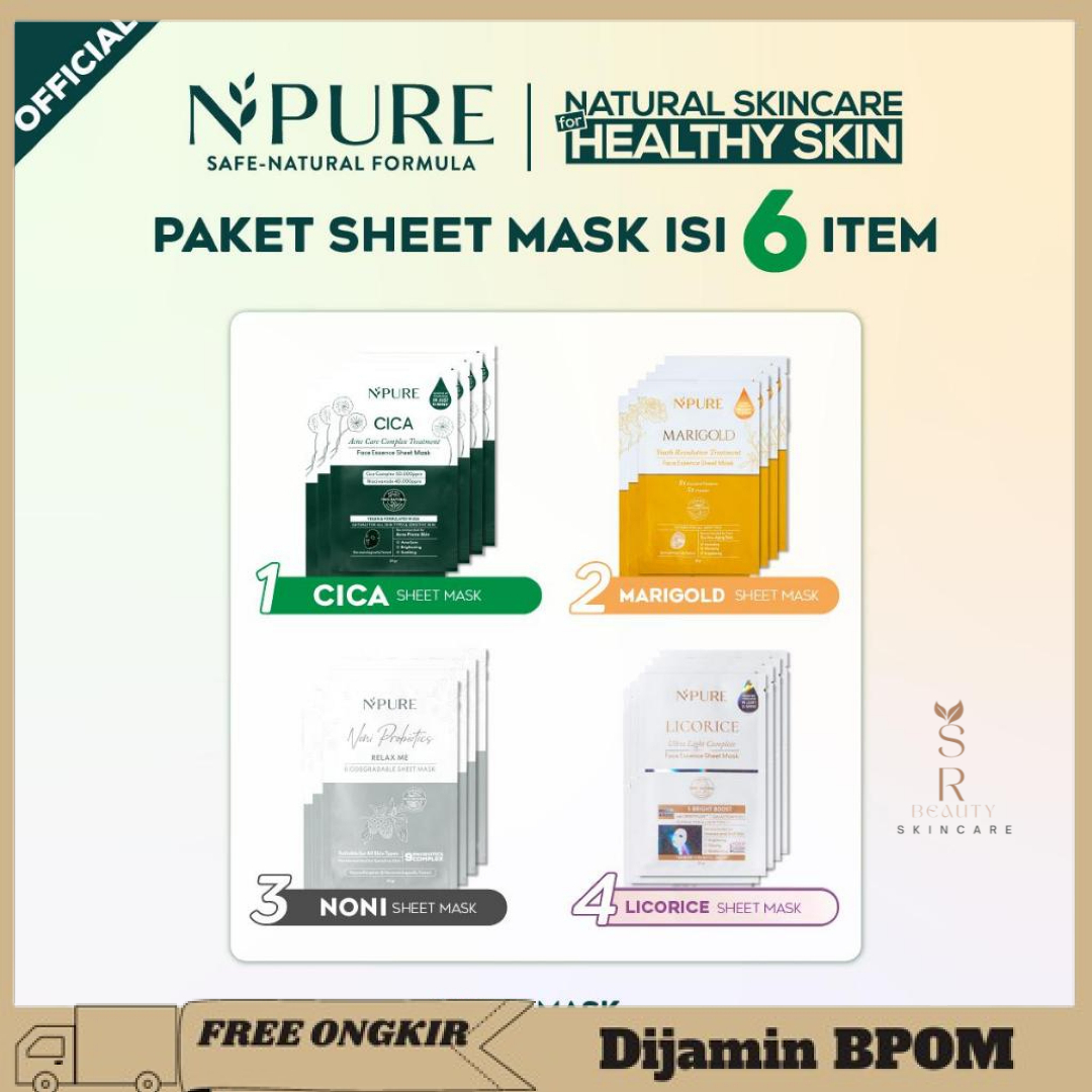 NPURE 6 pcs Sheet Mask Cica/Noni/Marigold/Licorice Masker Wajah PROMO