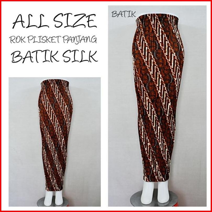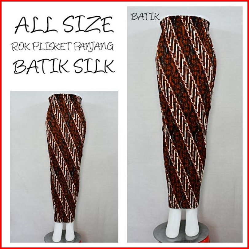 Indah Rok Prisket Plisket Panjang Batik Silk All Size Fit 4l Sr F