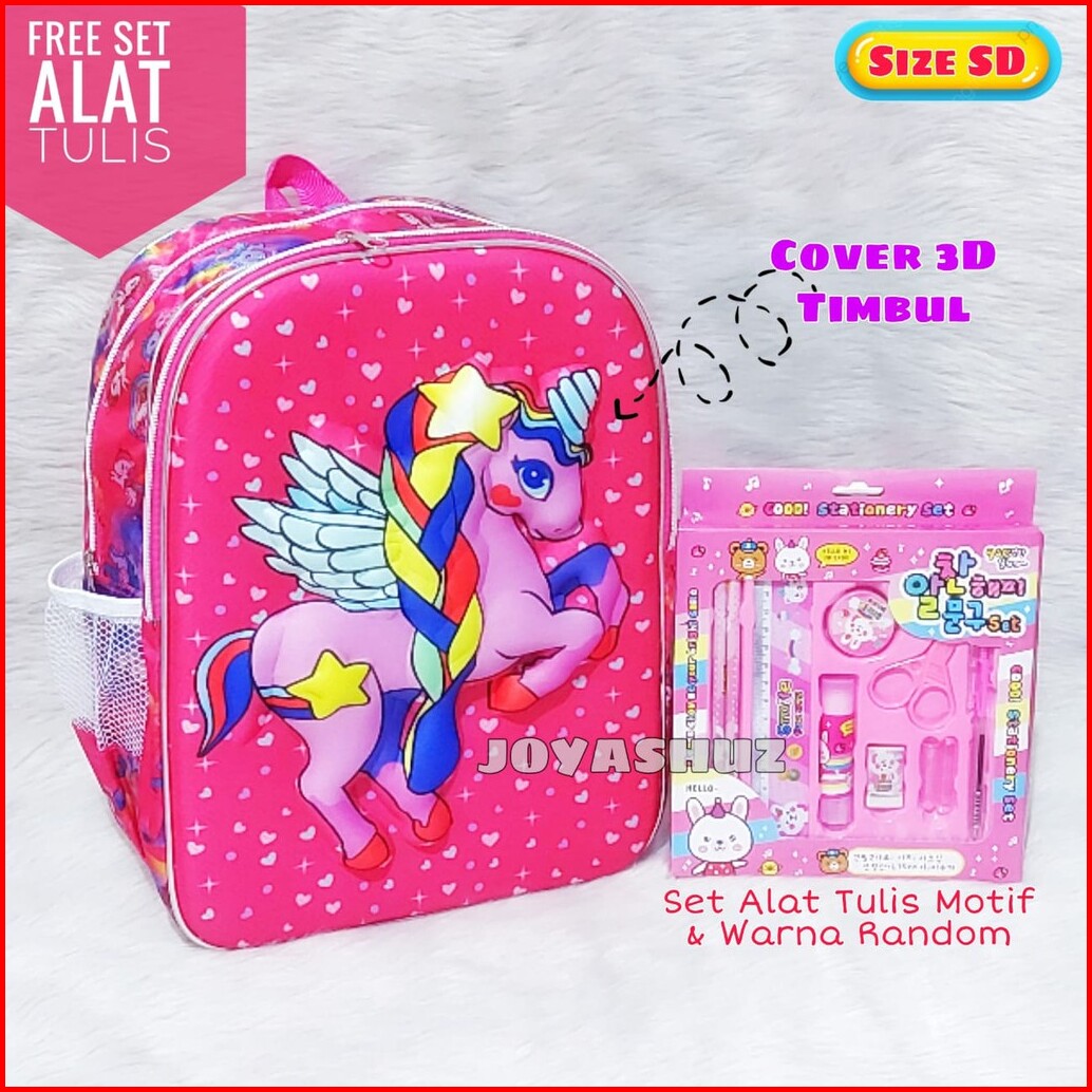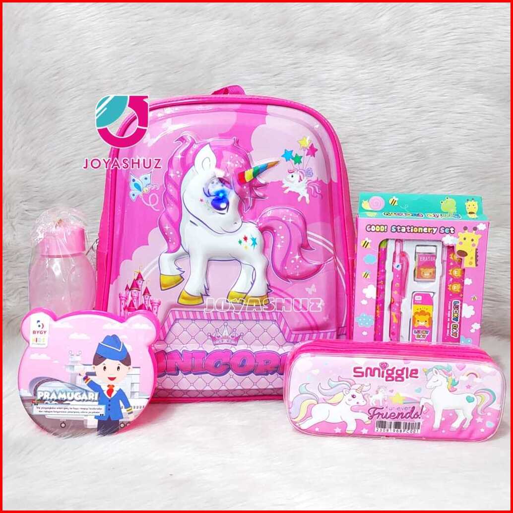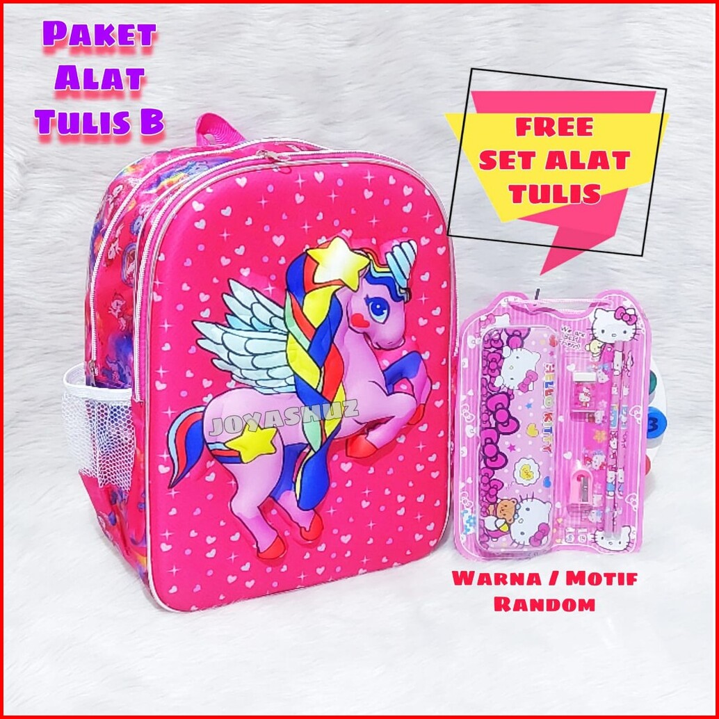 Tas Sekolah Anak Unicorn 3 Dimensi Gratis Set Alat Tulis Ransel Unicorn Tas Karakter Anak