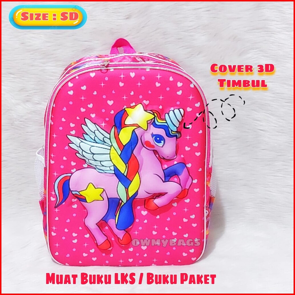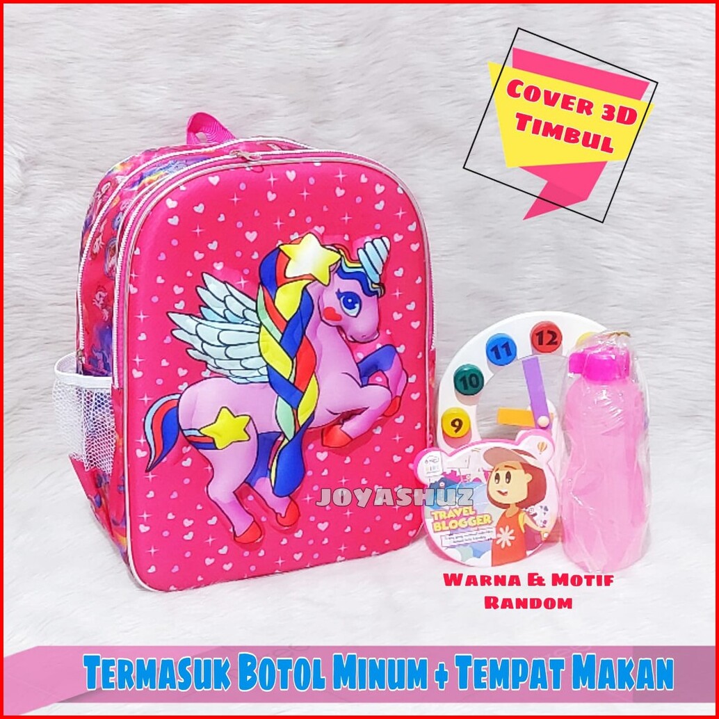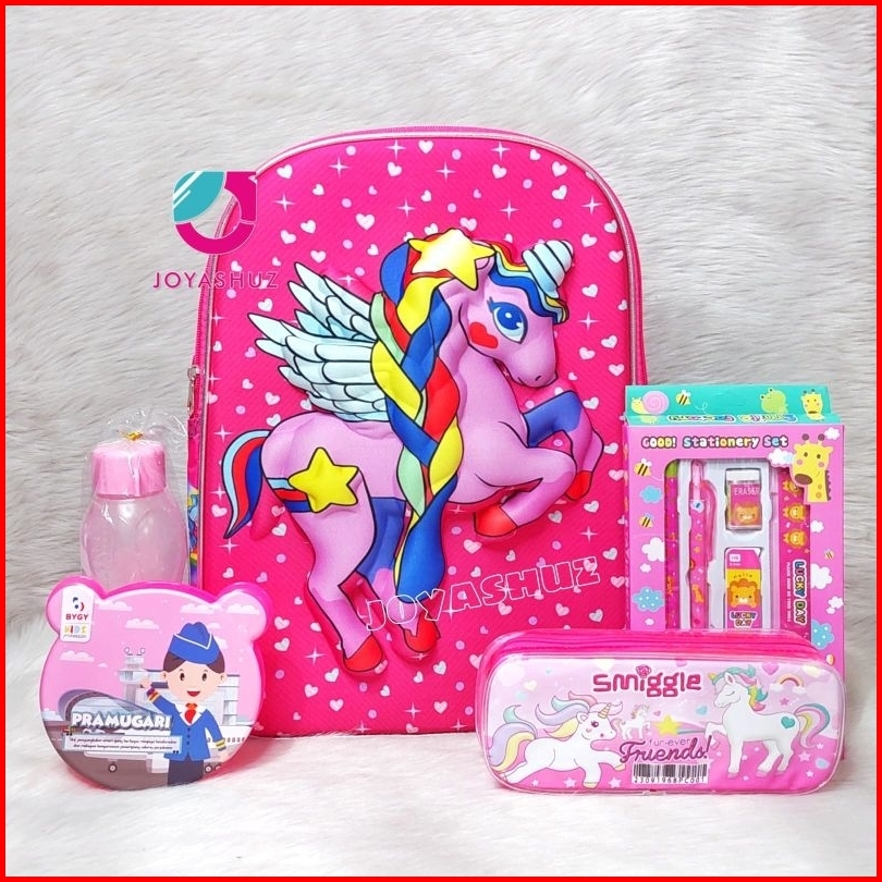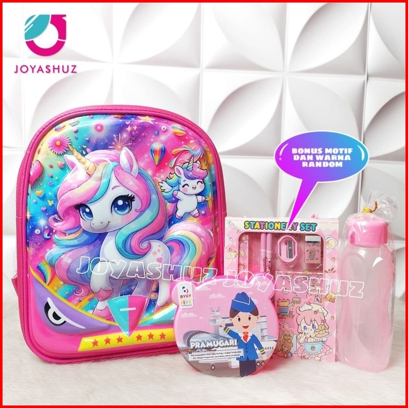 Tas Sekolah Anak Unicorn 3 Dimensi Gratis Set Alat Tulis Ransel Unicorn Tas Karakter Anak