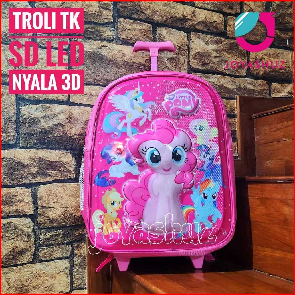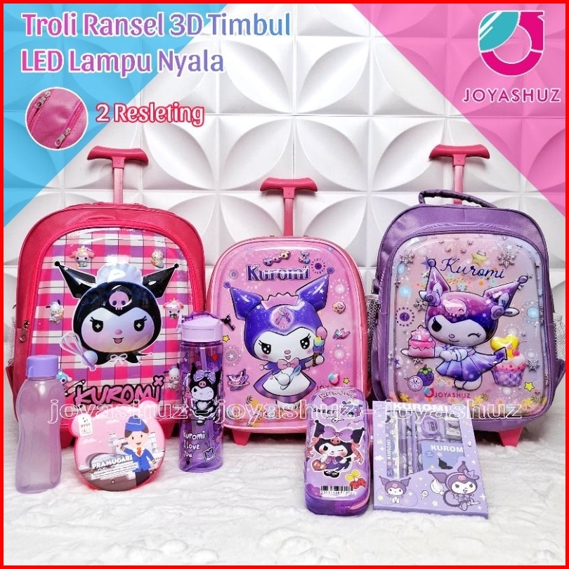 Tas Troli Anak Perempuan Tk Sd Ransel Kuromi Timbul 3d Led Glosy - Tas Dorong Anak Tk Sd - Tas Sekolah Trolley Anak Pere