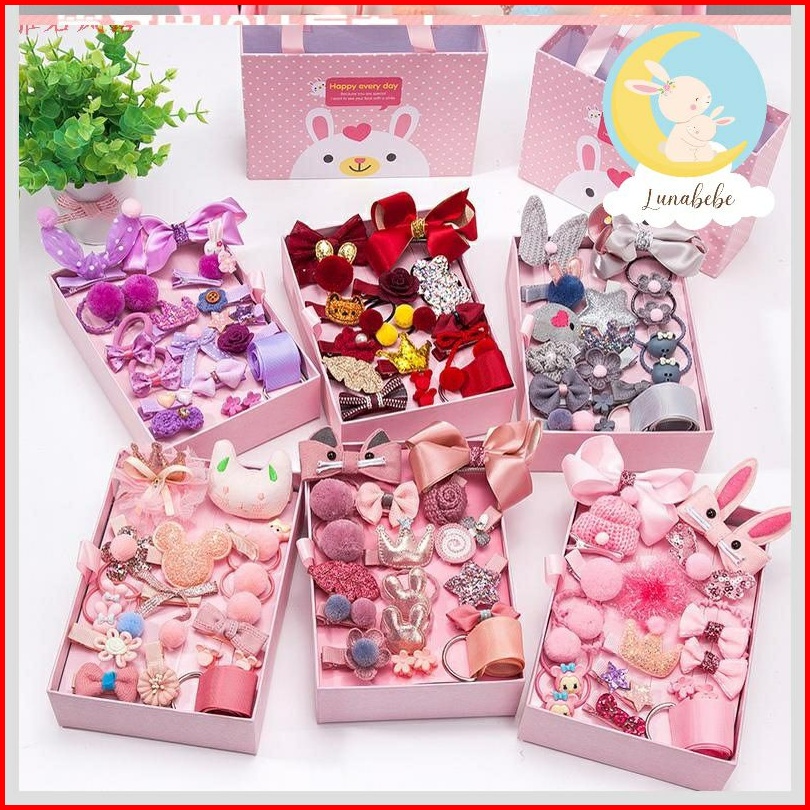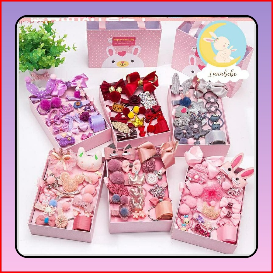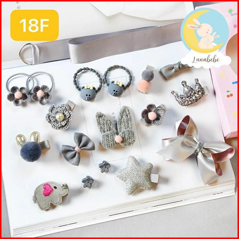 Ikat Rambut Anak Pita 18 Pcs Set Jepit Rambut Anak Perempuan Korea Set Box 18 Pcs Aksesoris Rambut Bayi