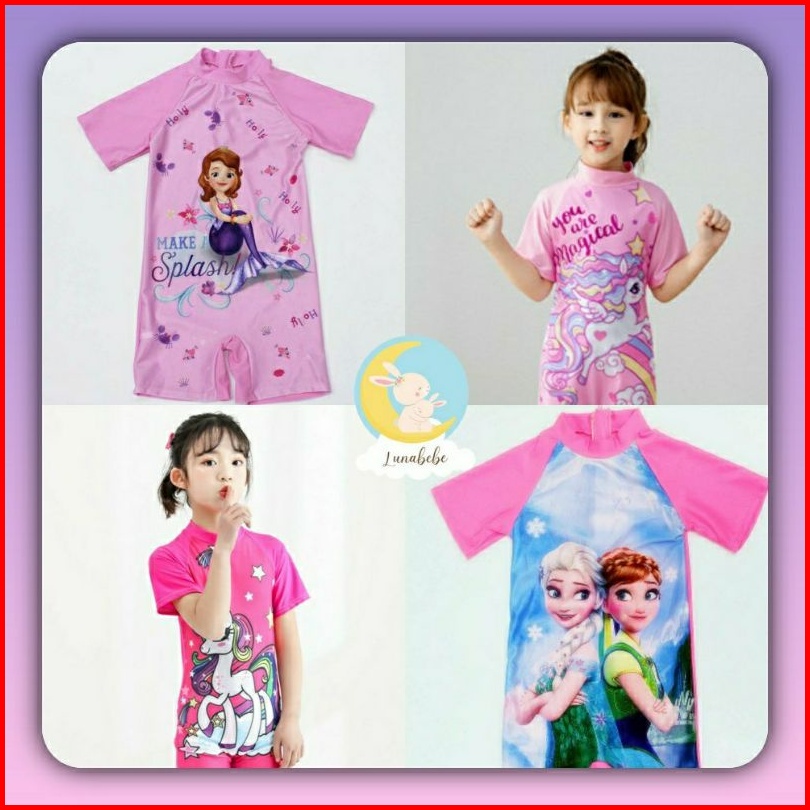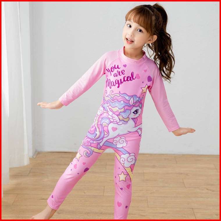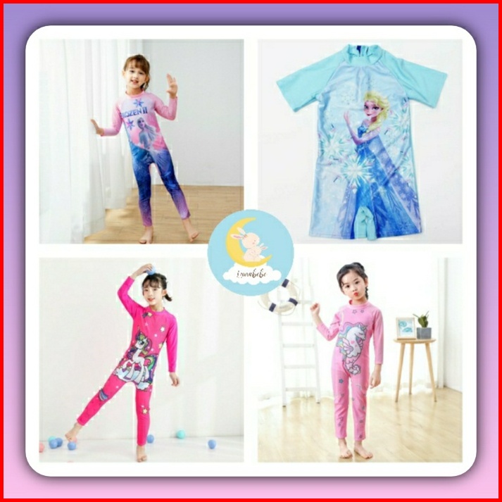Baju Renang Anak Perempuan Frozen Unicorn Swimsuit Pendek Baju Renang Anak Perempuan Muslim Islami Lengan Panjang Celana