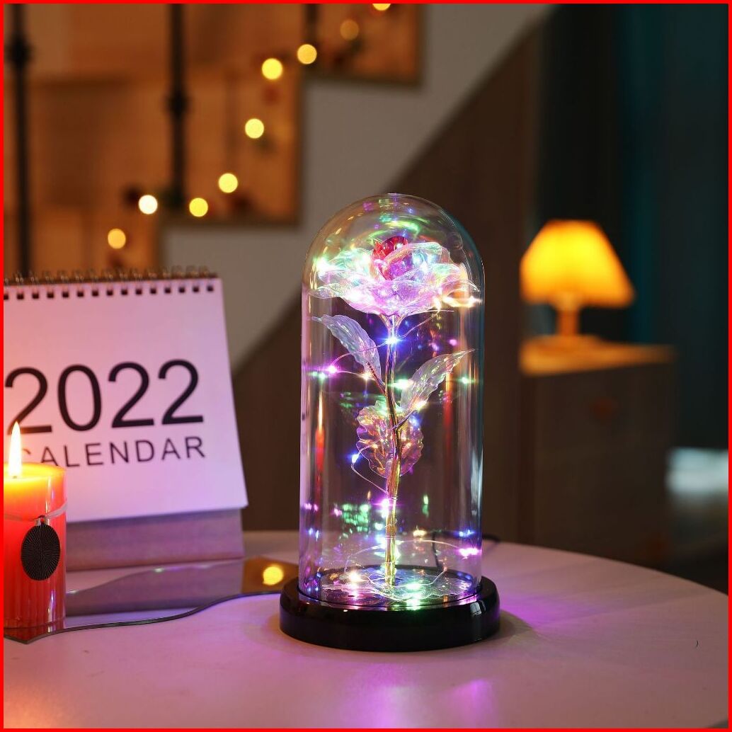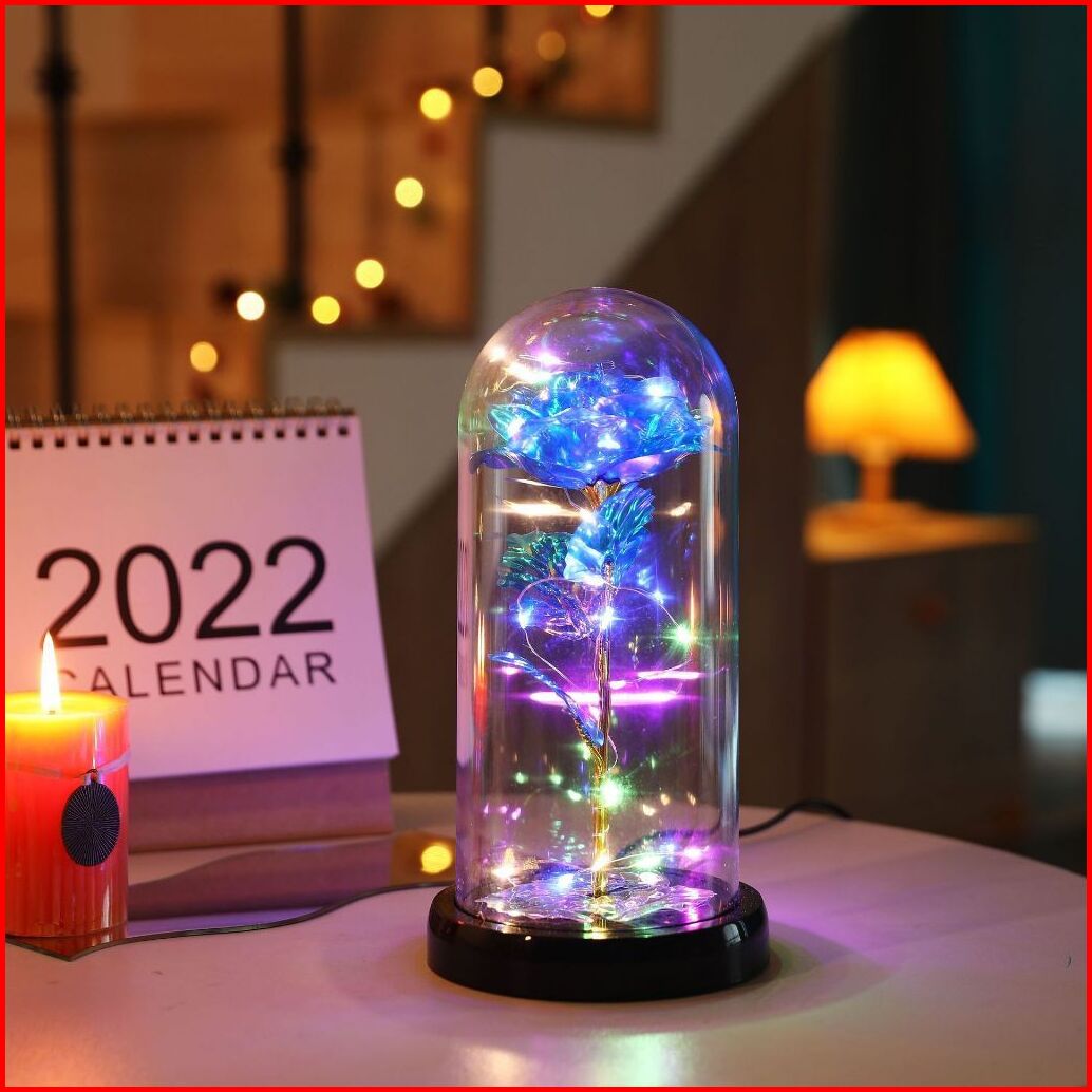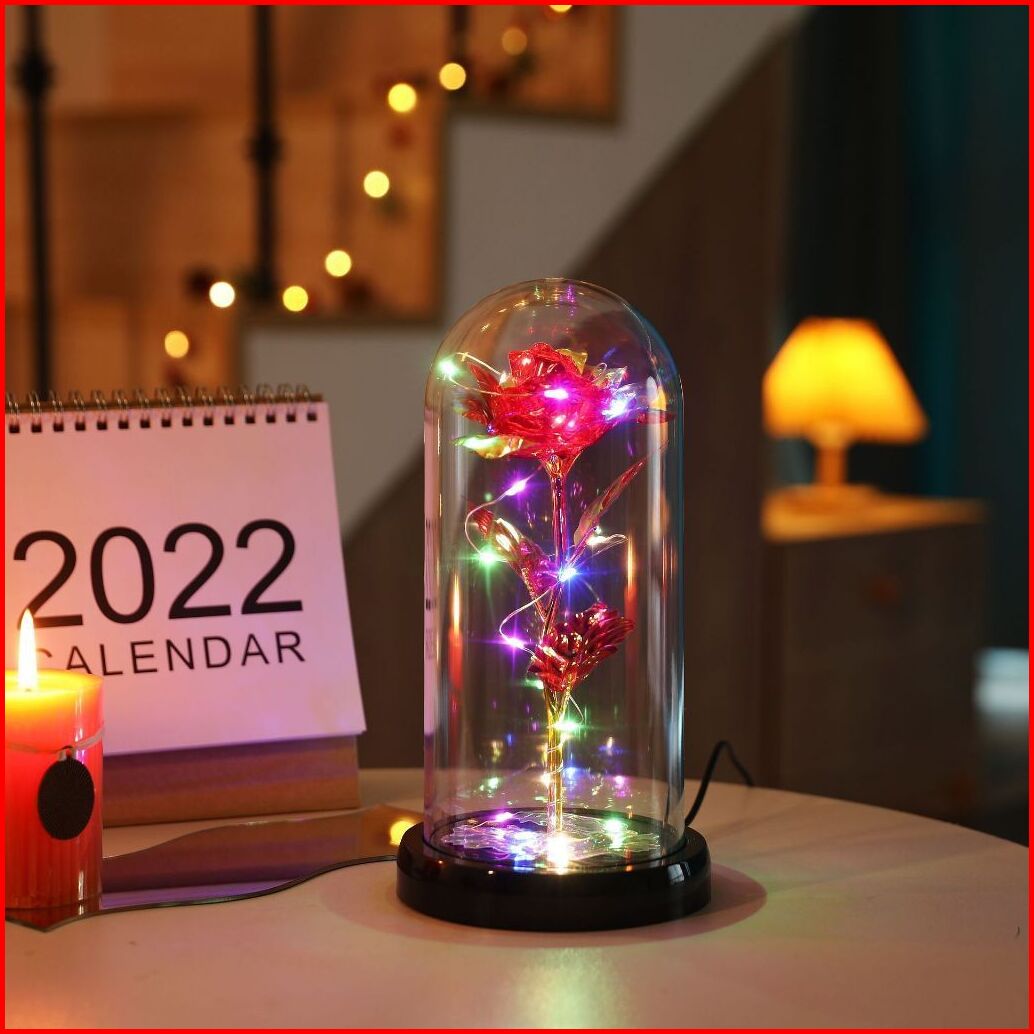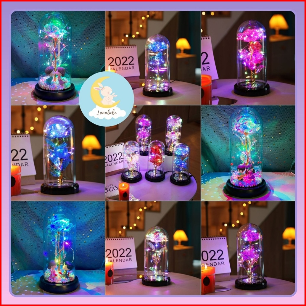 Flower Led Lampu Led Bunga Mawar Dekorasi Beauty And The Beast Rose Hampers Pajangan Kado Hiasan Ruangan Kamar Glass Dom