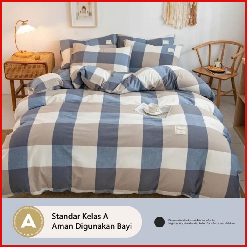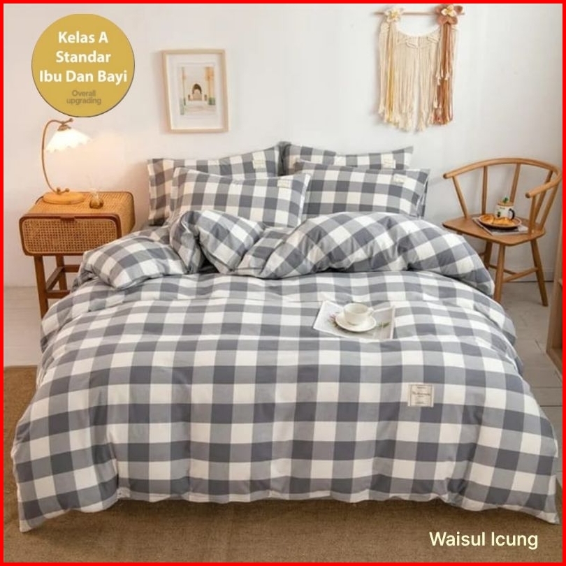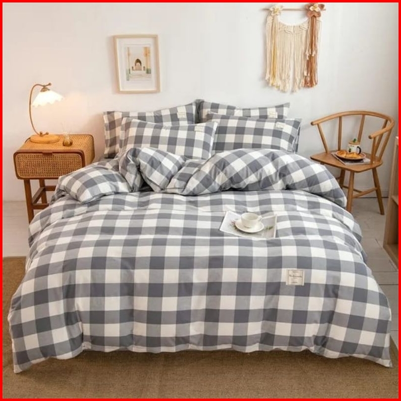 Sprei Aesthic Modern Minimalis Seprei Homemade Korean Style Aesthetic Emily Grid Katun Disperse Bahan Adem Motif Kotak