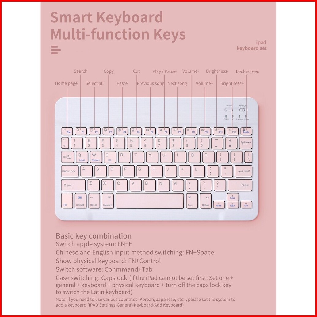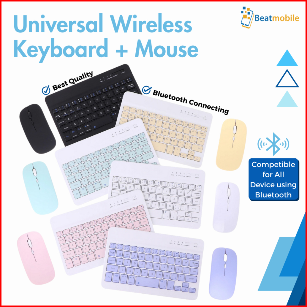 Beatmobile - 10 Inch Wireless Bluetooth Keyboard Mouse Silent For Tablet Ipad Android Ios Windows Mini Portable Keyboard