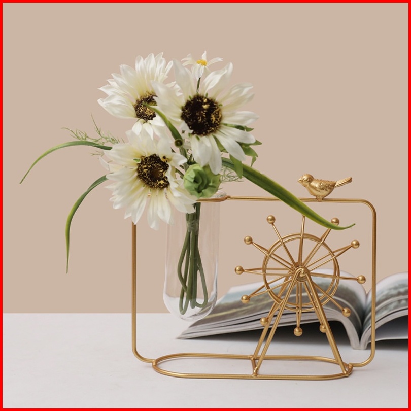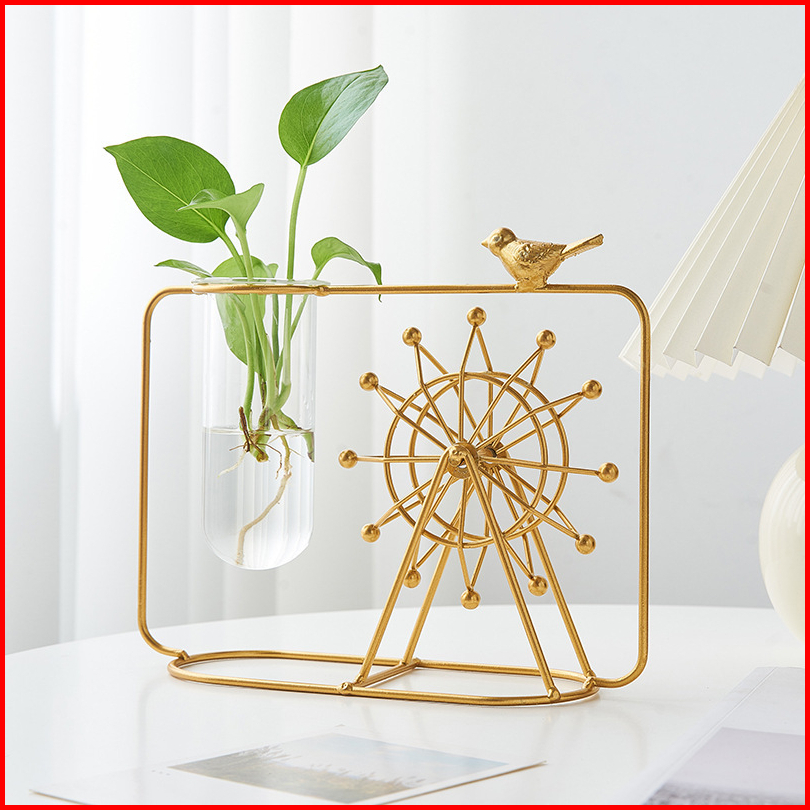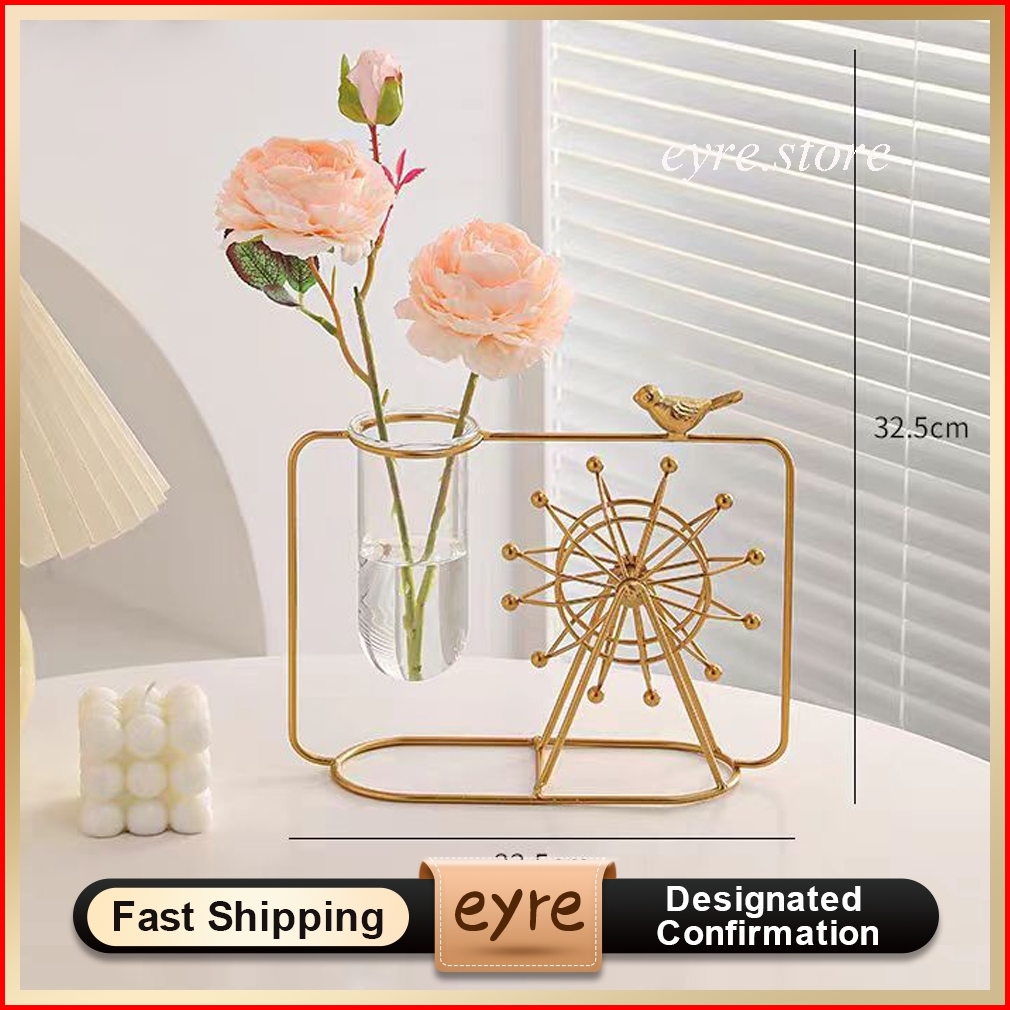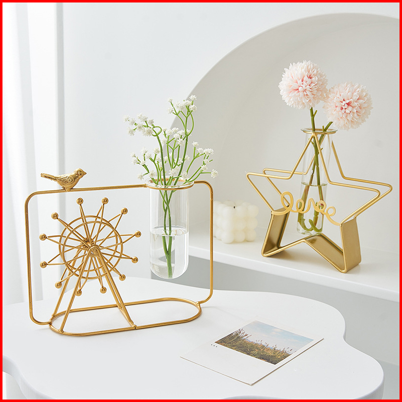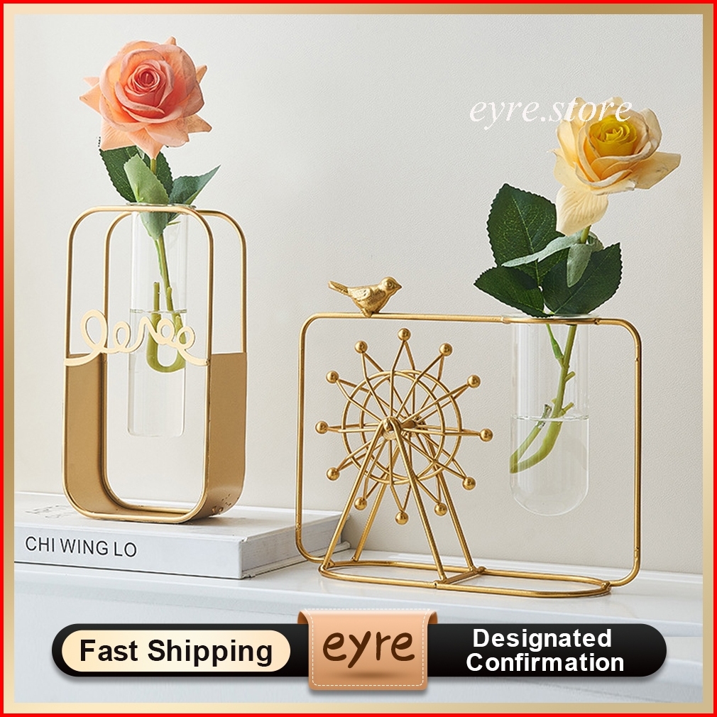 Eyrejaminan Kualitas Kreatif Besi Tempa Bunga Peralatan Kaca Transparan Tabung Reaksi Vas Tanaman Hidroponik Bunga Menyi