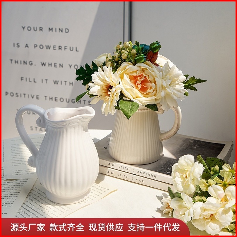 Eyre Jaminan Kualitasskandinavia Dalam Vas Keramik Vintage Vas Keramik Hidroponik Ketel Putih Ornamen Ruang Tamu Vas Bun