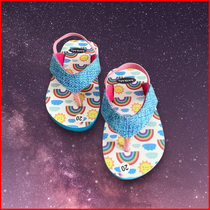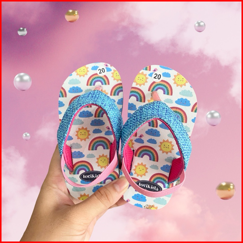 Sandal Japit Anak Cewek Perempuan Love Kid Japit Series - Rainbow Blue