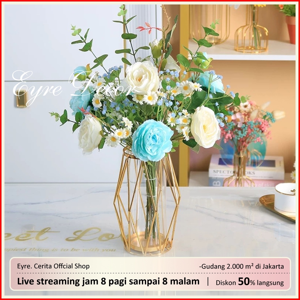 Eyre Jaminan Kualitasdekorasi Meja Vas Besi Belah Ketupat Ringan Dekorasi Vas Bunga Tabung Reaksi Kaca Hidroponik Light