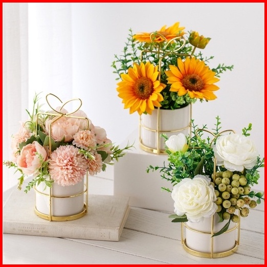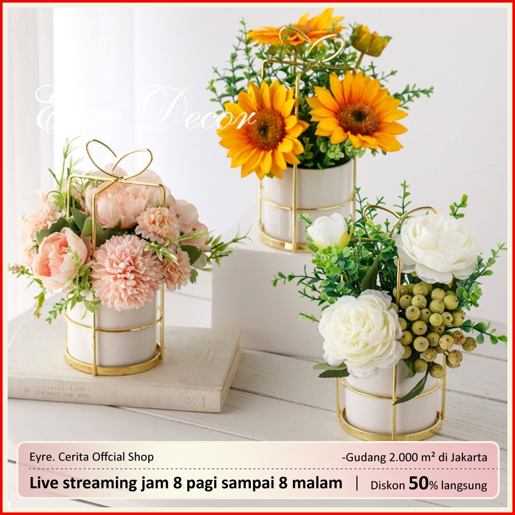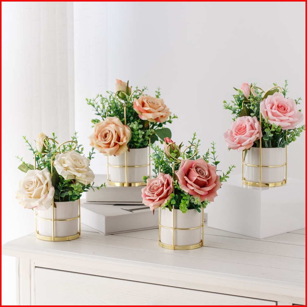 Eyre Toko Premiere Nordic Simulasi Bunga Set Keramik Vas Mawar Simulasi Tanaman Pot Dekorasi Rumah Palsu Pot Bunga Nordi