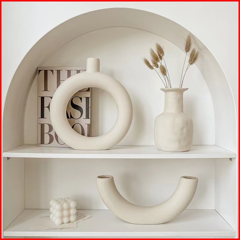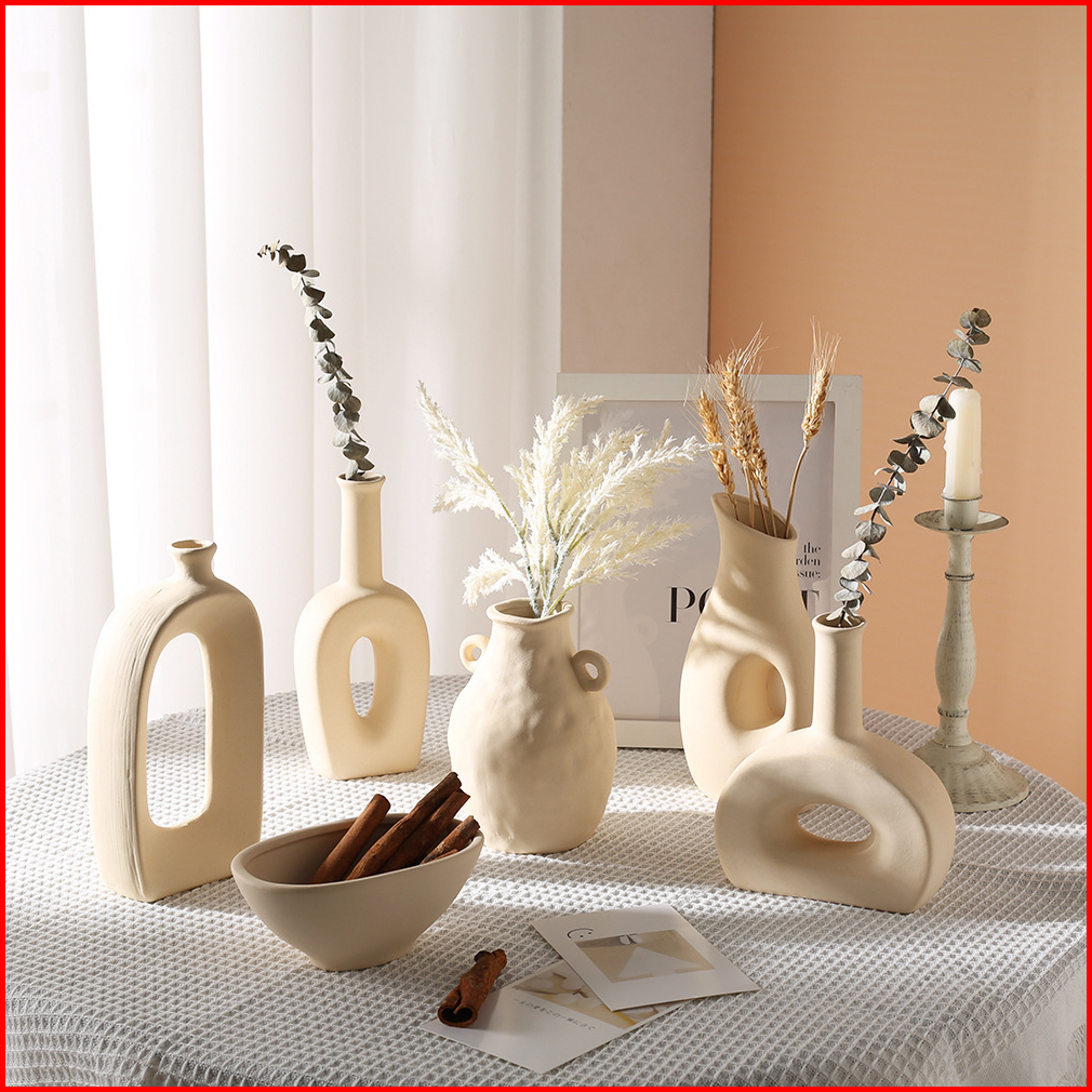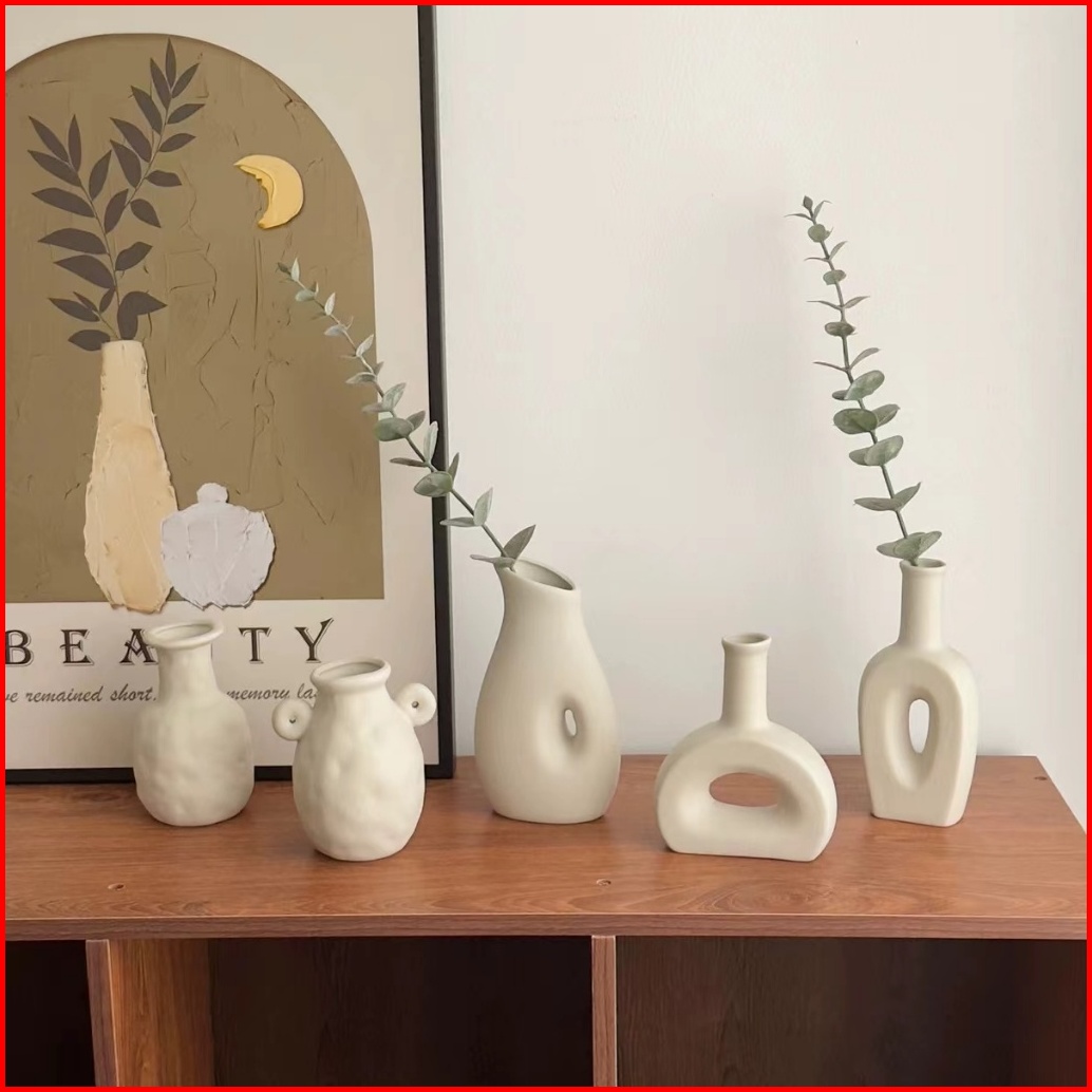 Eyre Vas Keramik Putih Bunga Kering Ruang Tamu Rangkaian Bunga Meja Makan Hidroponik Meja Makan Dekorasi Rumah Ins White