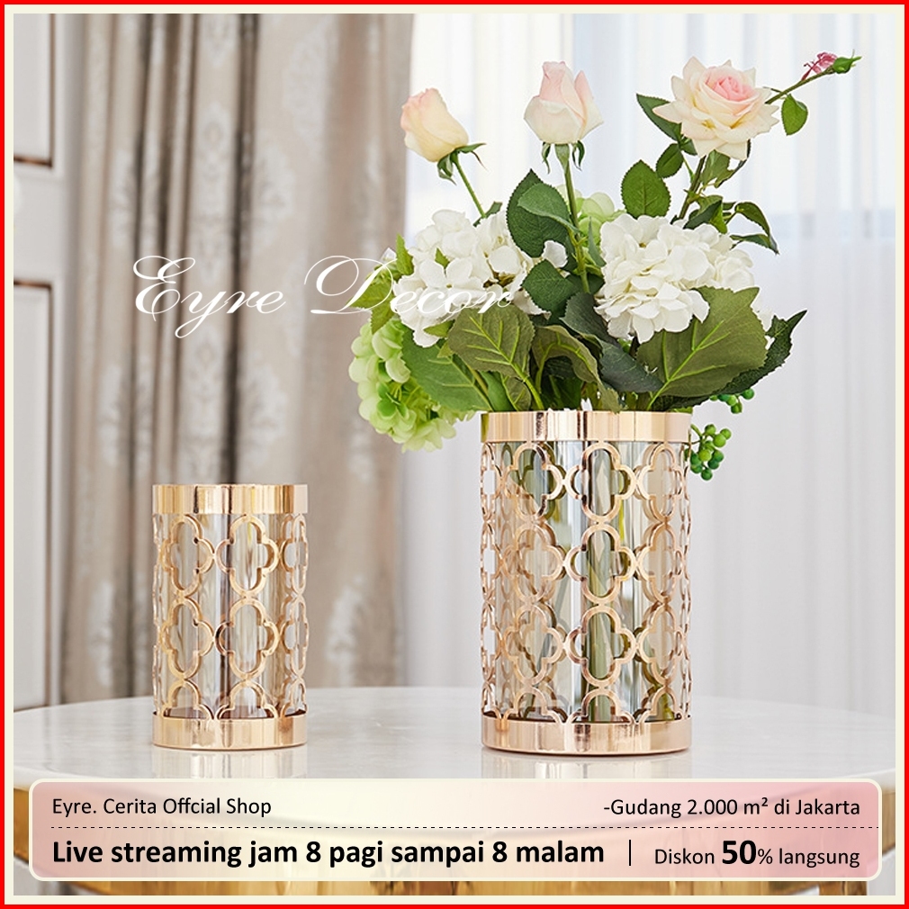 Eyre Rekomendasi Manajer Tokomodern Light Metal Glass Vas Kaca Ringan Gaya Rumah Amerika Penghias Pintu Masuk Meja Makan