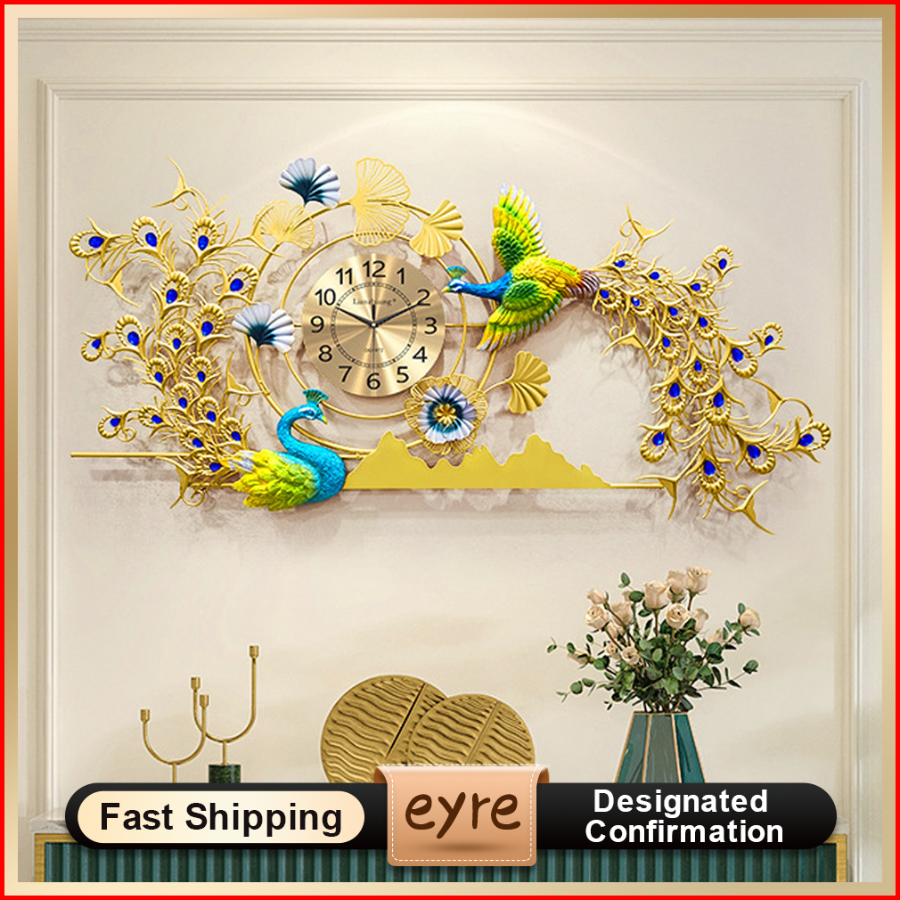 Eyre Jaminan Kualitas Merak Jam Dinding Besar Ruang Tamu Kepribadian Cina Kreatif Jam Rumah Mode Bisu Dekorasi Jam Kuars