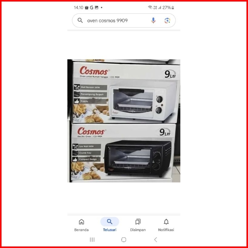Oven Cosmos Co-9909 Kecil Pemanggang Mini Kue Kering Roti Co 9909 9 Liter 9l