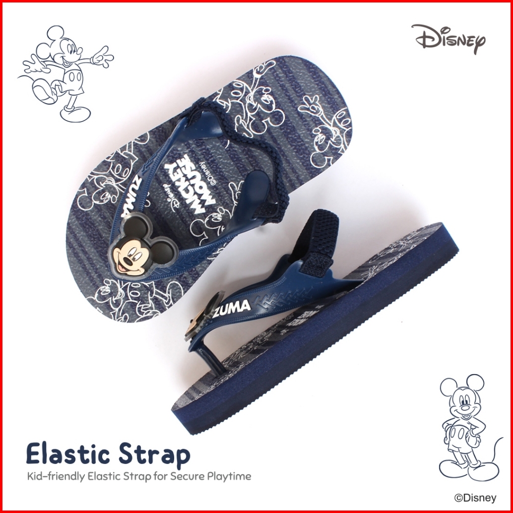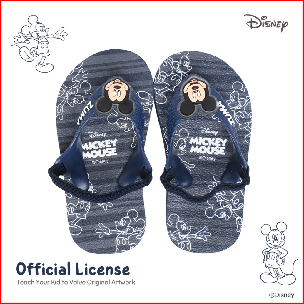 Zuma Baby X Disney Mickey 2 Navy Sandal Jepit Bayi Karet Tali Belakang Biru Dongker